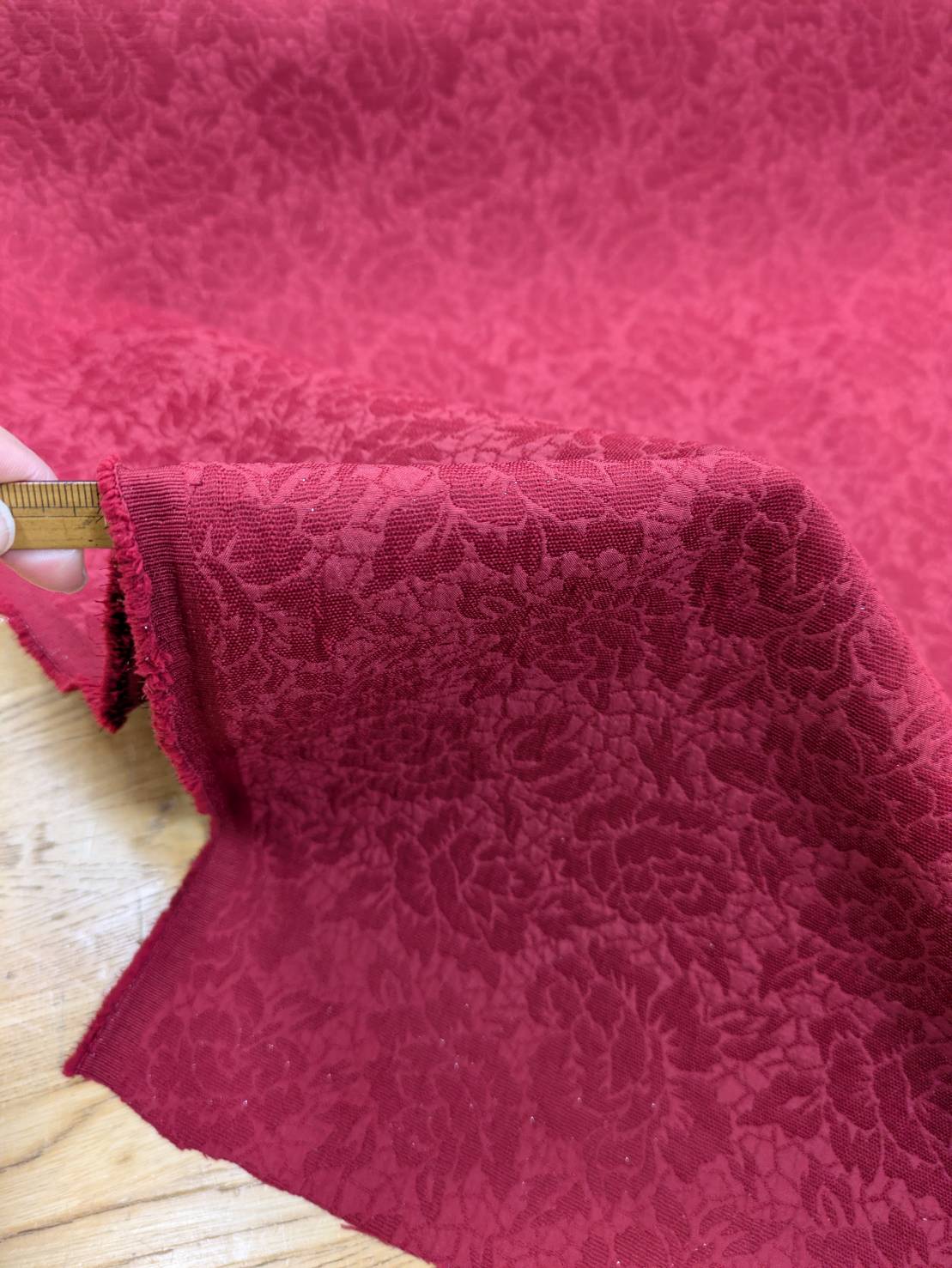 生地:ポリエステル100%バラ柄ふくれジャガード(赤)