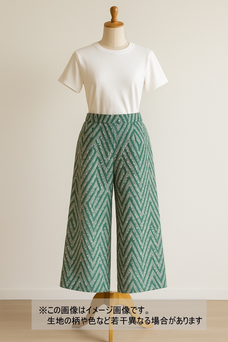 無地のトップスと合わせると生地の個性が引き立ちます。