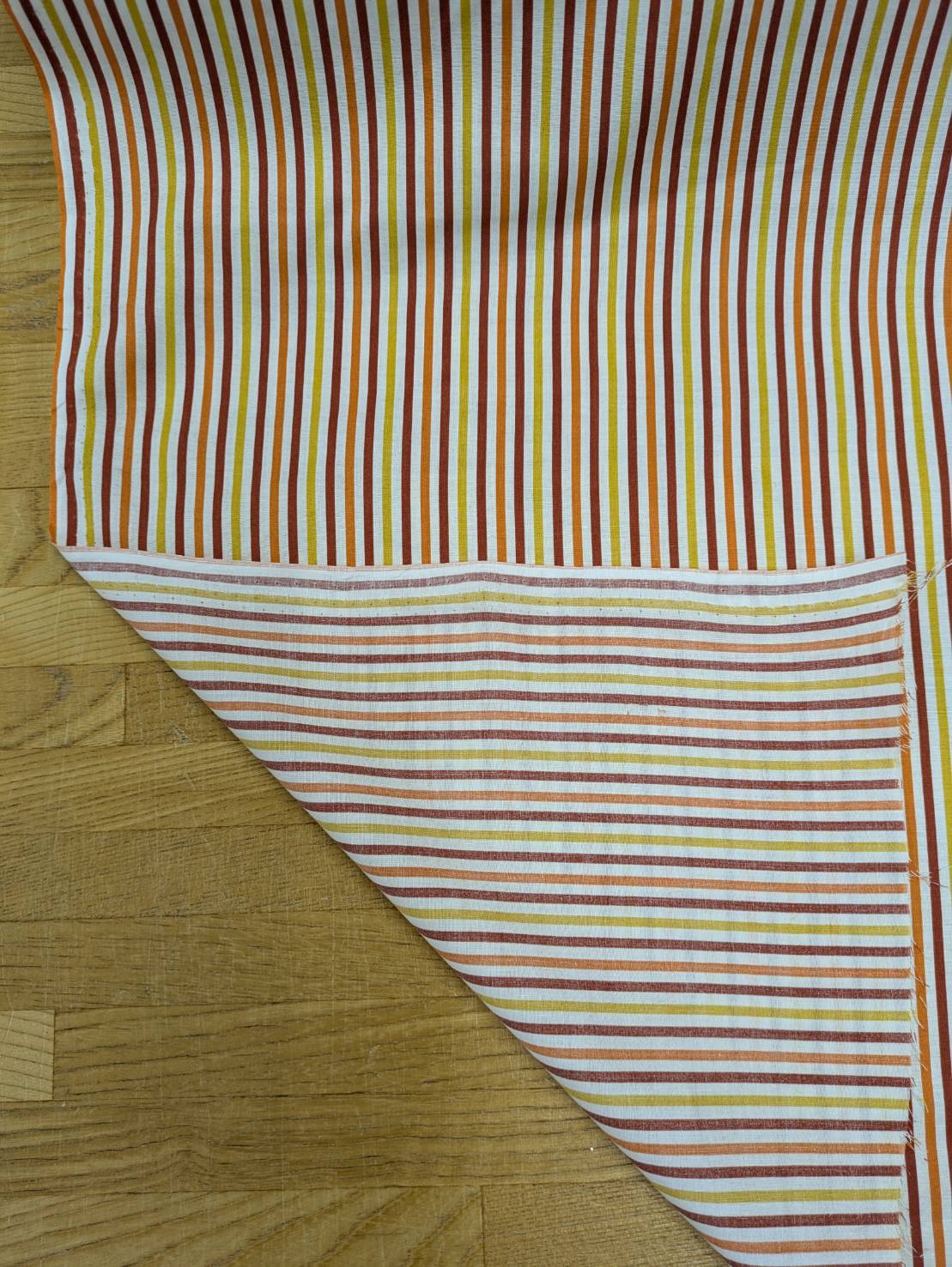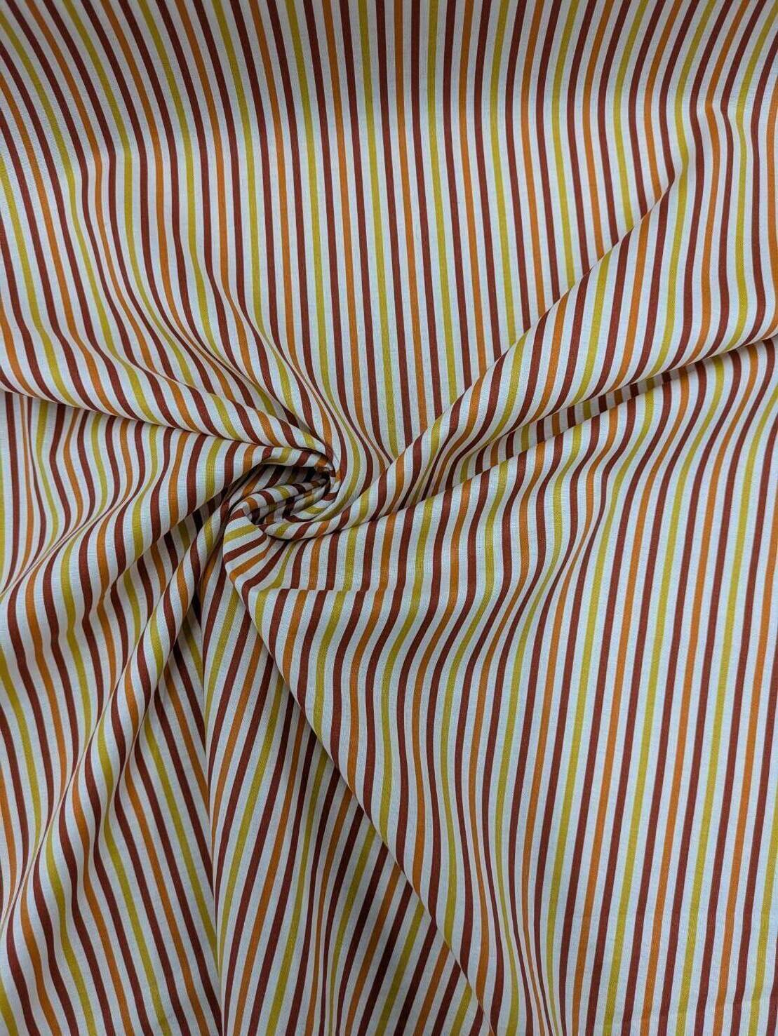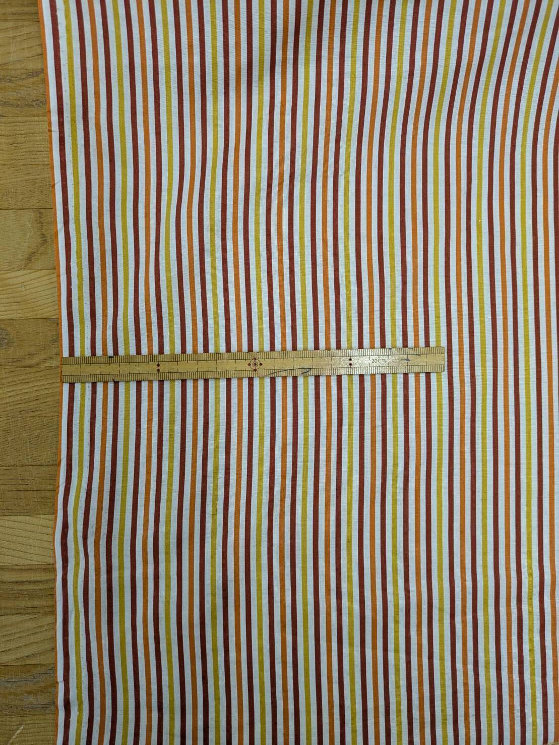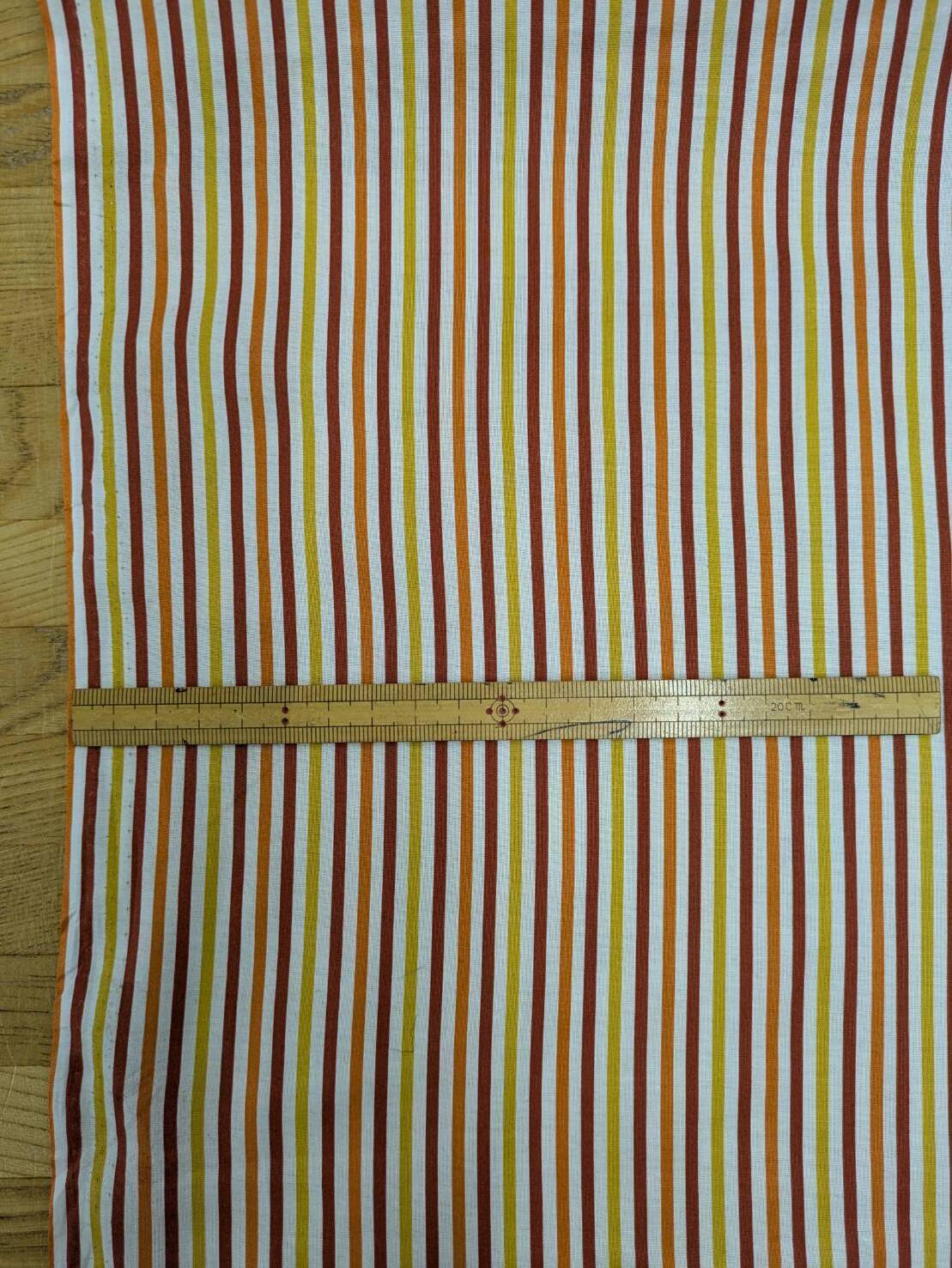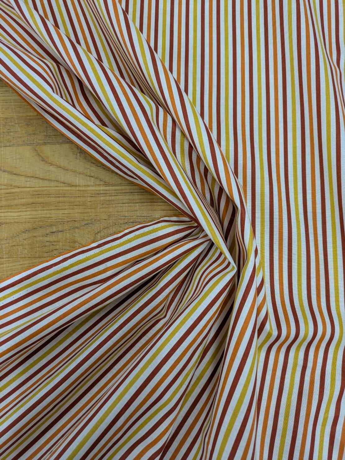 白地にイエロー・オレンジ・レッドのストライプを配した爽やかな綿生地。