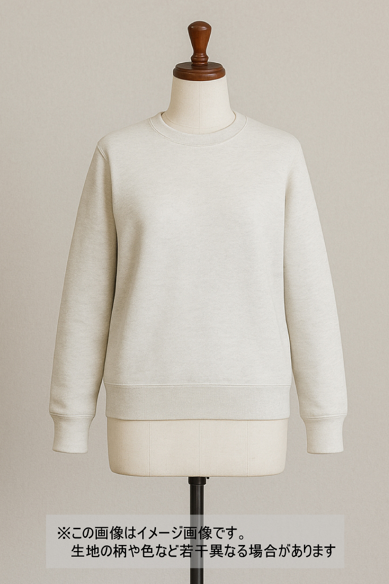 表面はなめらかで、裏は白い裏毛仕様。一般的なトレーナー地で、やや厚手ながら柔らかい風合いです。