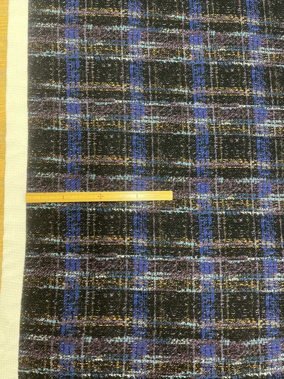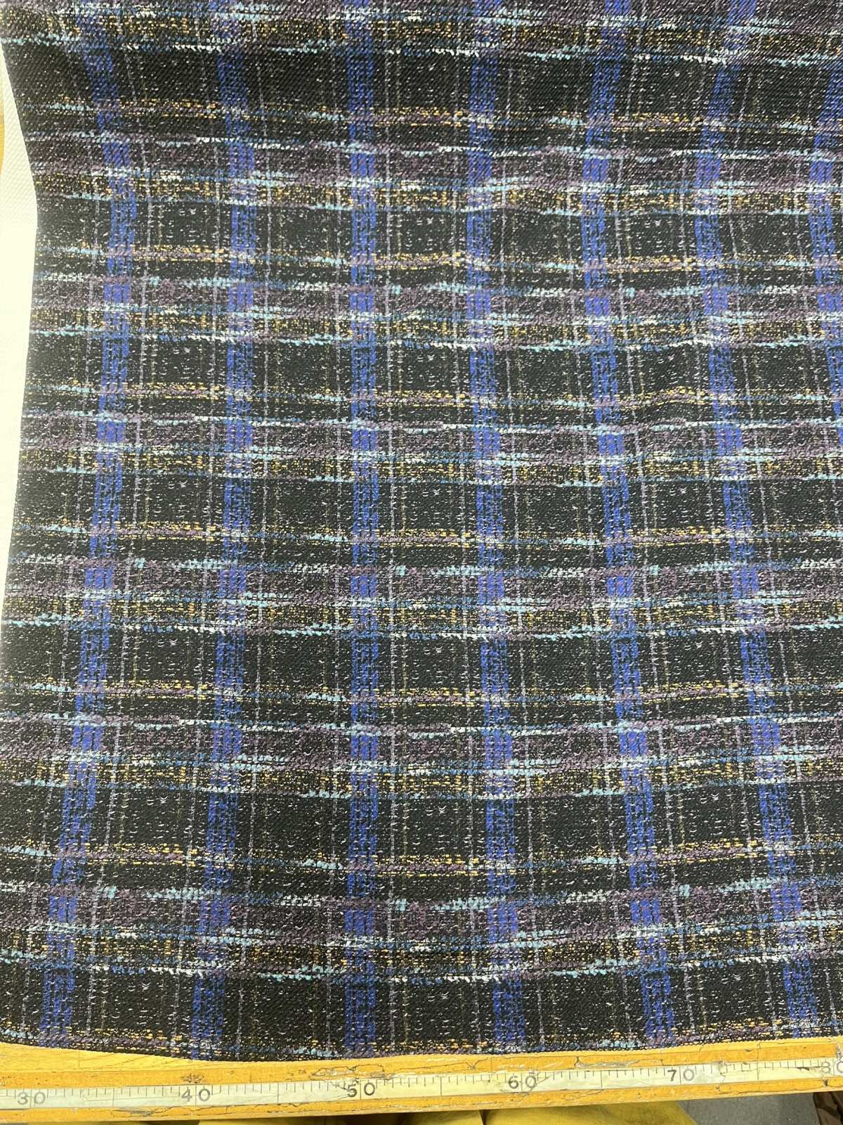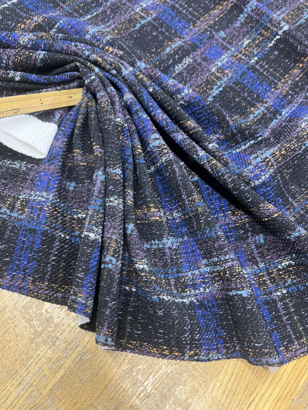 生地:ポリエステル100%手描き風チェック柄プリントニット(ネイビー系) [kiji-3123]