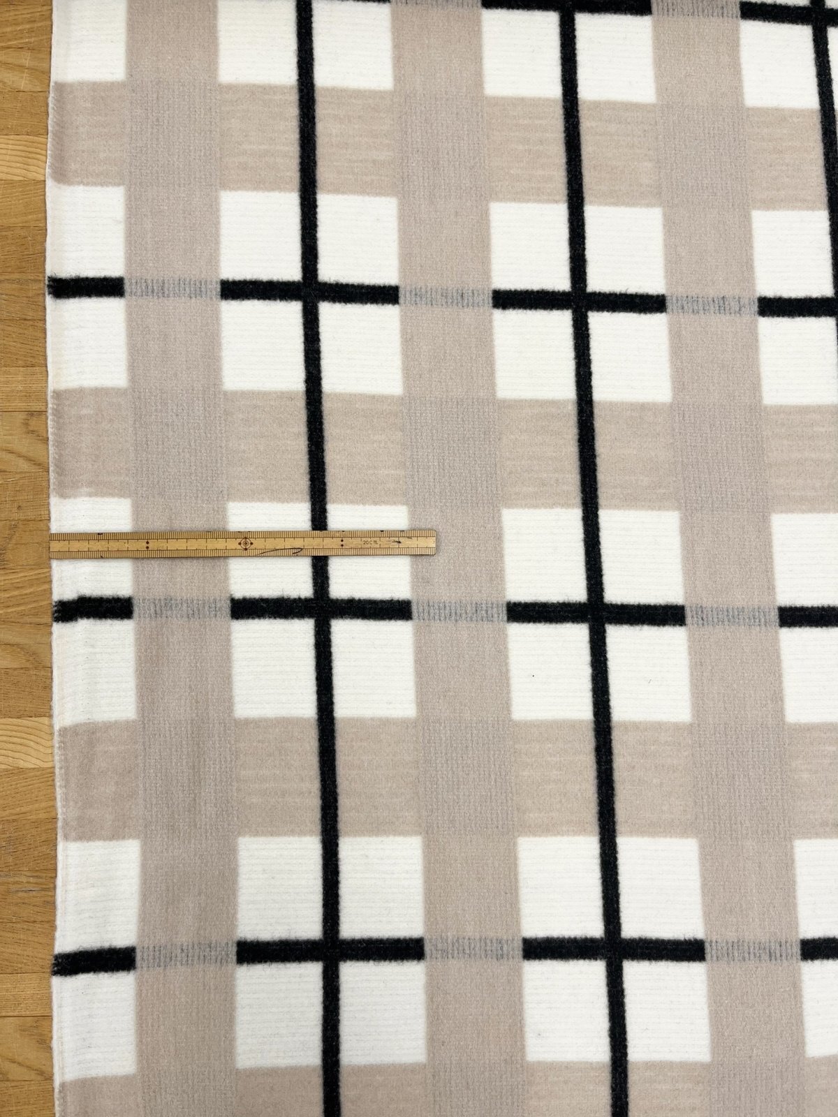 生地:大柄チェック起毛ウール混ファブリック(白×黒×グレージュ) [kiji-3133]
