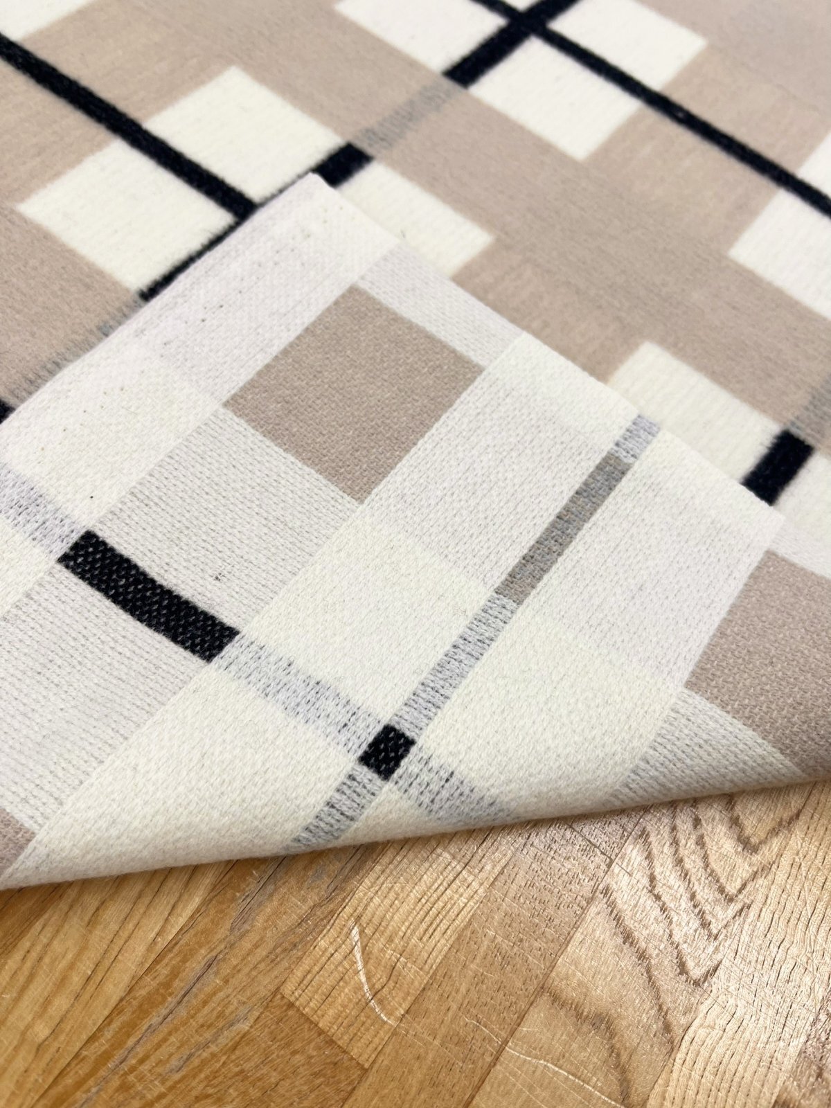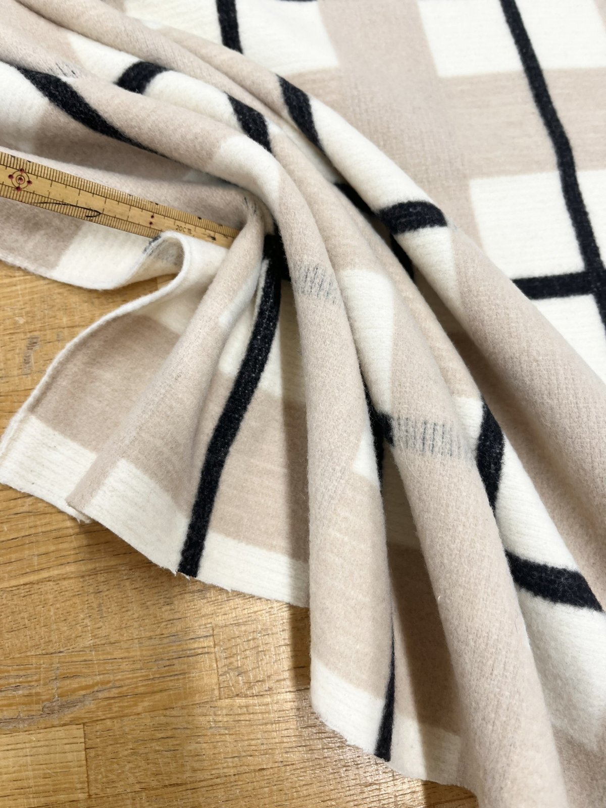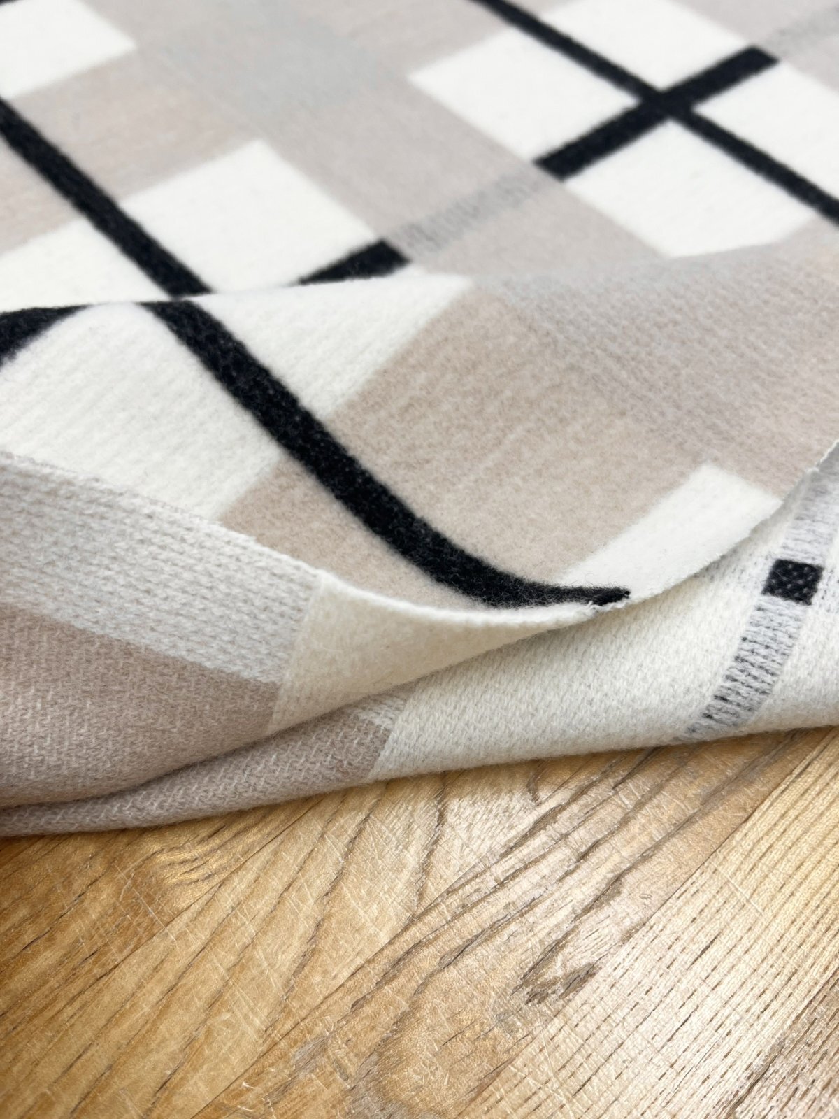 生地:大柄チェック起毛ウール混ファブリック(白×黒×グレージュ)