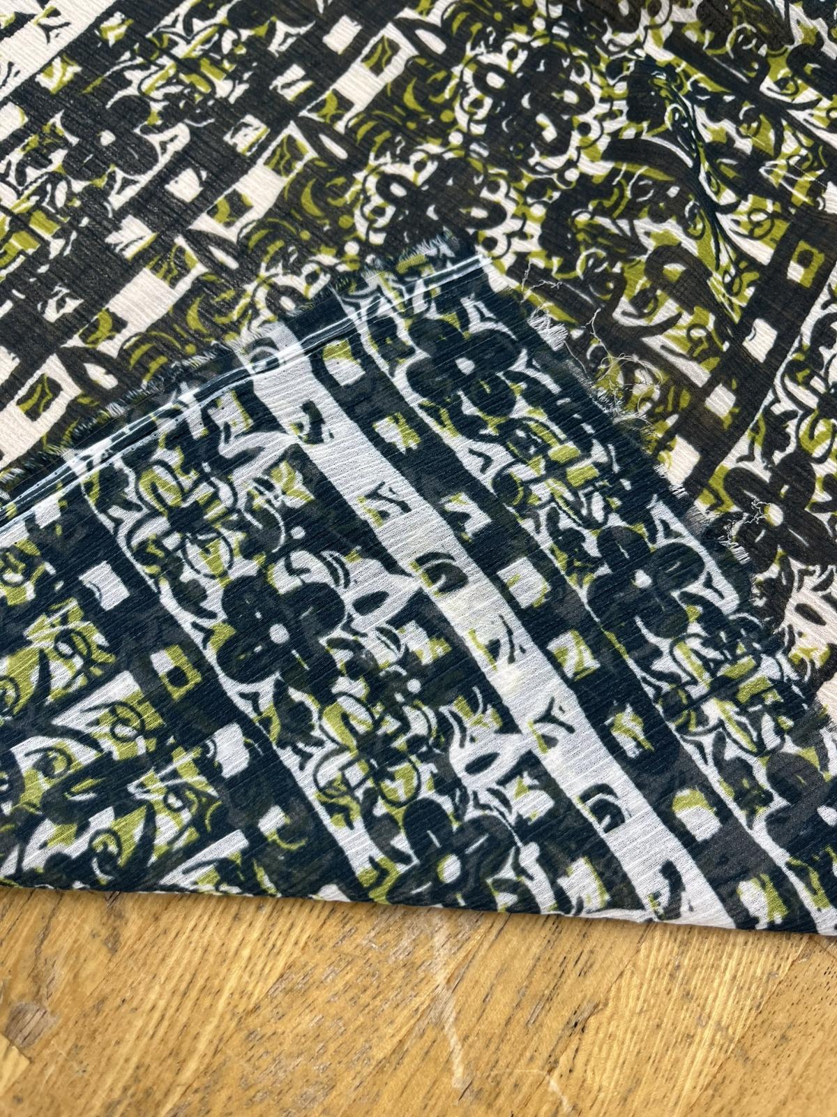 生地:ポリエステル 楊柳プリント(キナリ×グリーン・ブラック) [kiji-3150]