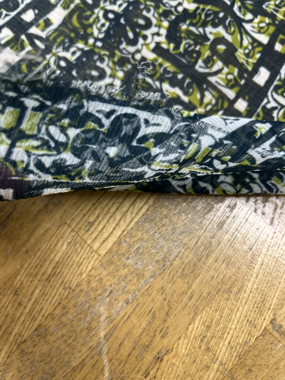 生地:ポリエステル 楊柳プリント(キナリ×グリーン・ブラック)