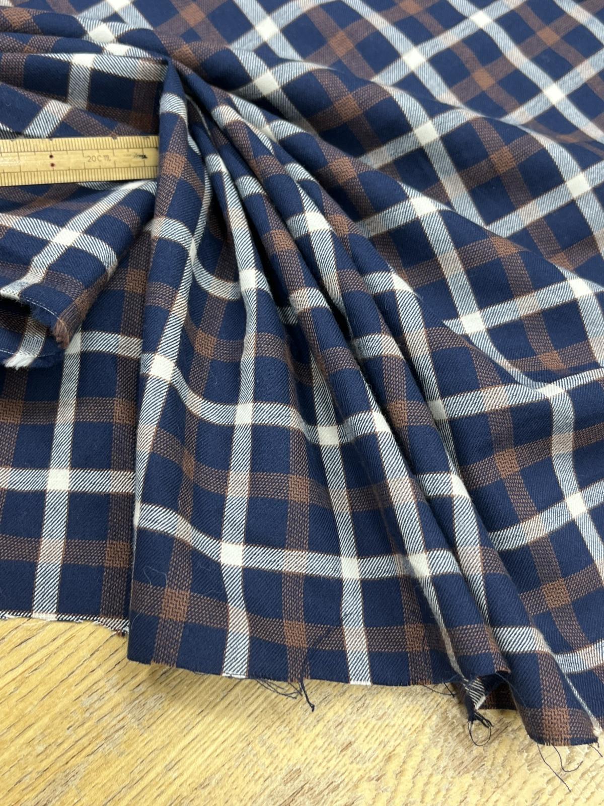 生地:綿100% チェック柄(紺/茶/白) [kiji-3152]