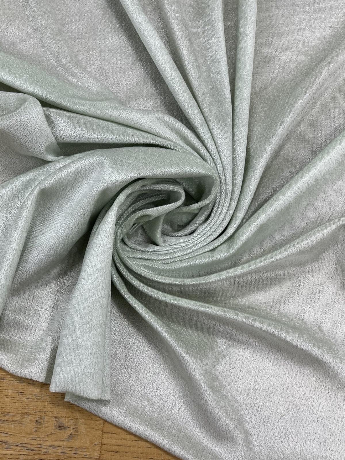 やわらかな薄緑色がやさしい印象の、ポリエステル綿混のベロア素材です。