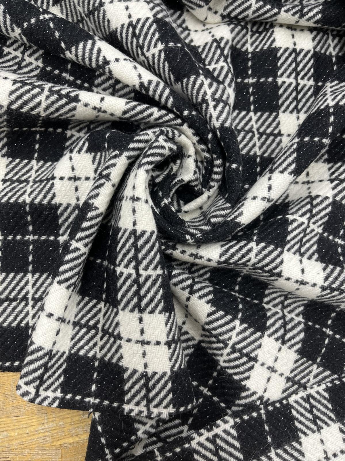 生地:ウール100% チェックラメ(ホワイト/ブラック)