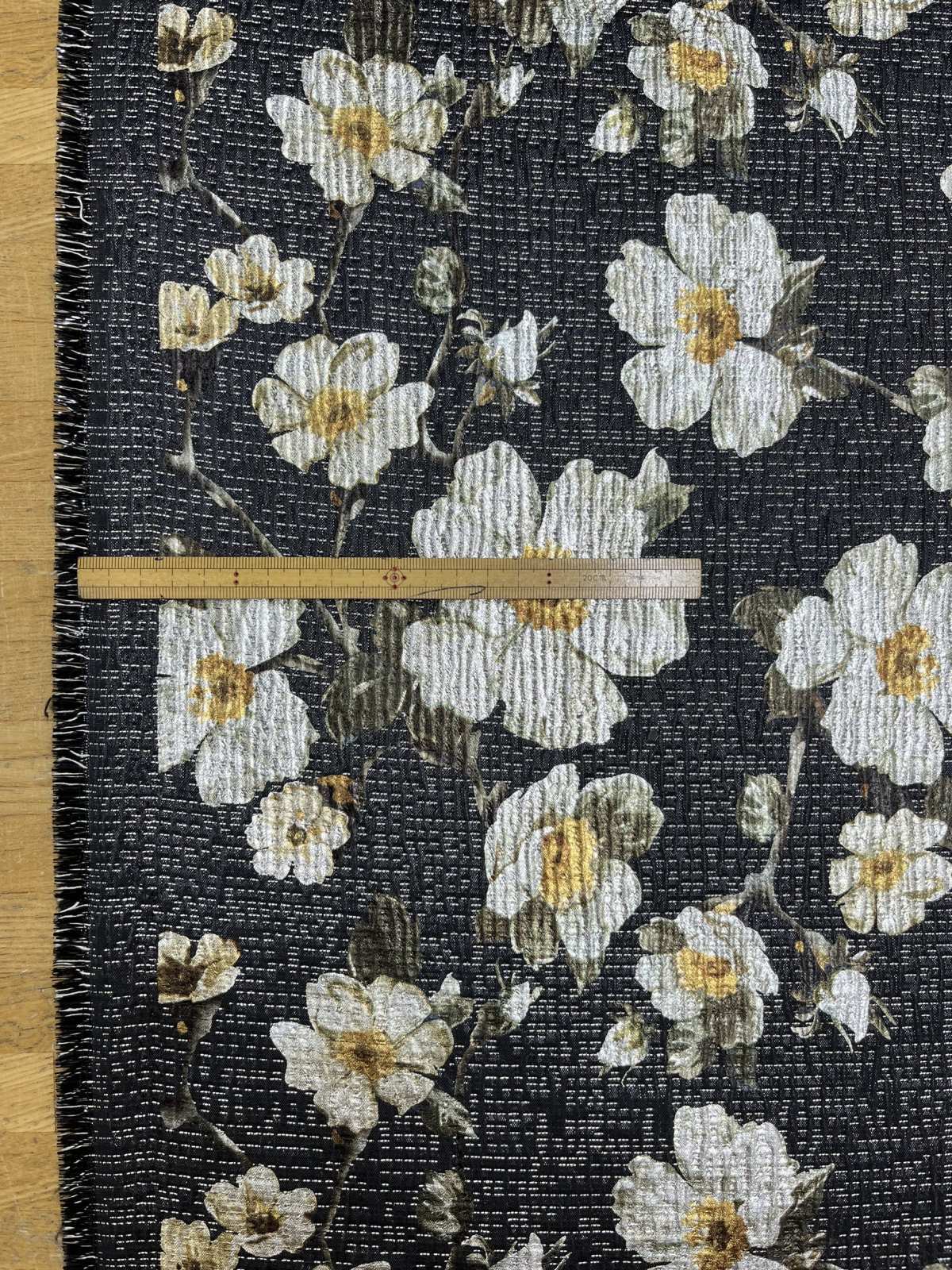 生地:ポリエステル100% フローラルジャカード(ブラック/ゴールド)