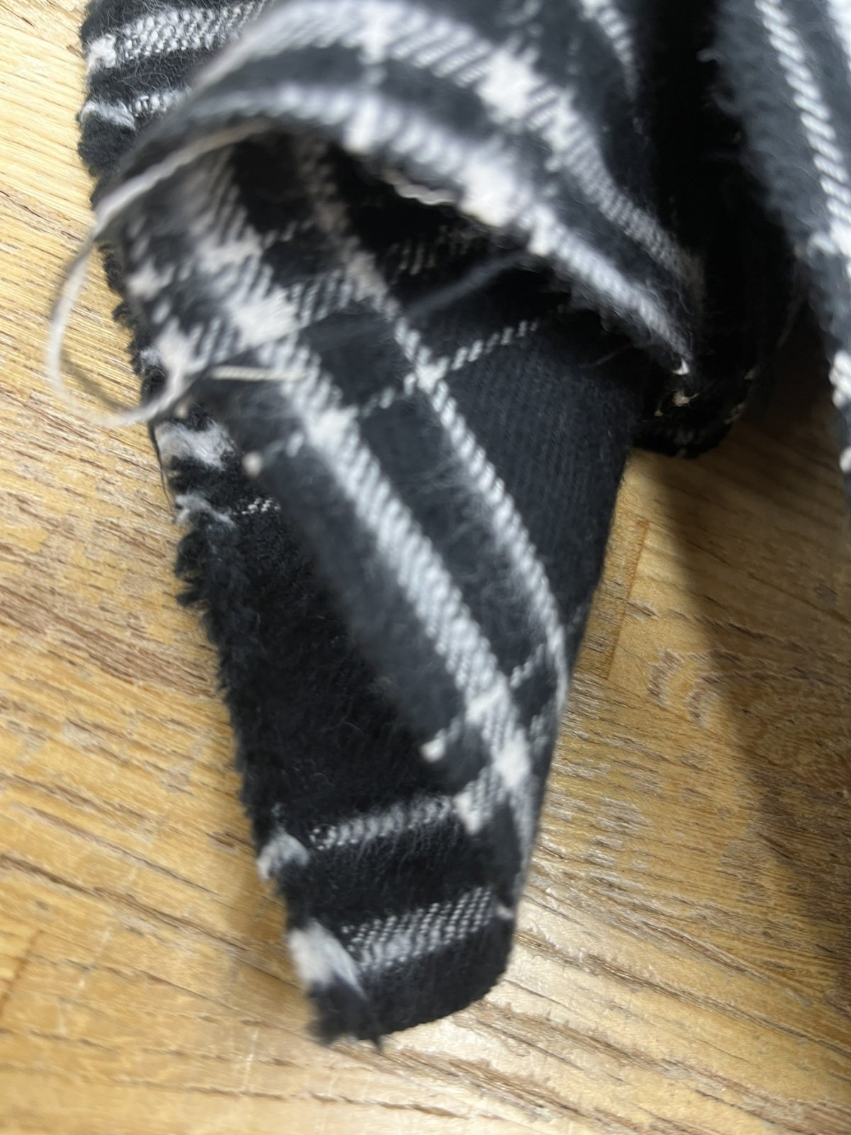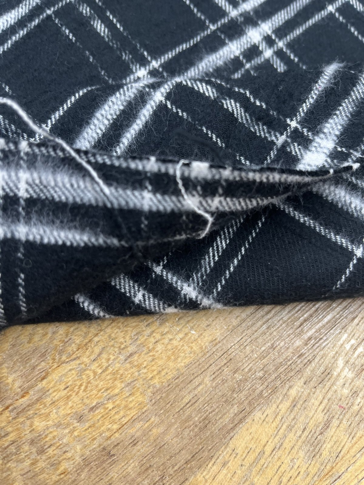 伸縮性はありませんが、綿素材ならではのやわらかさとほどよいハリのバランスが良く、裁断・縫製がしやすい扱いやすい生地です。