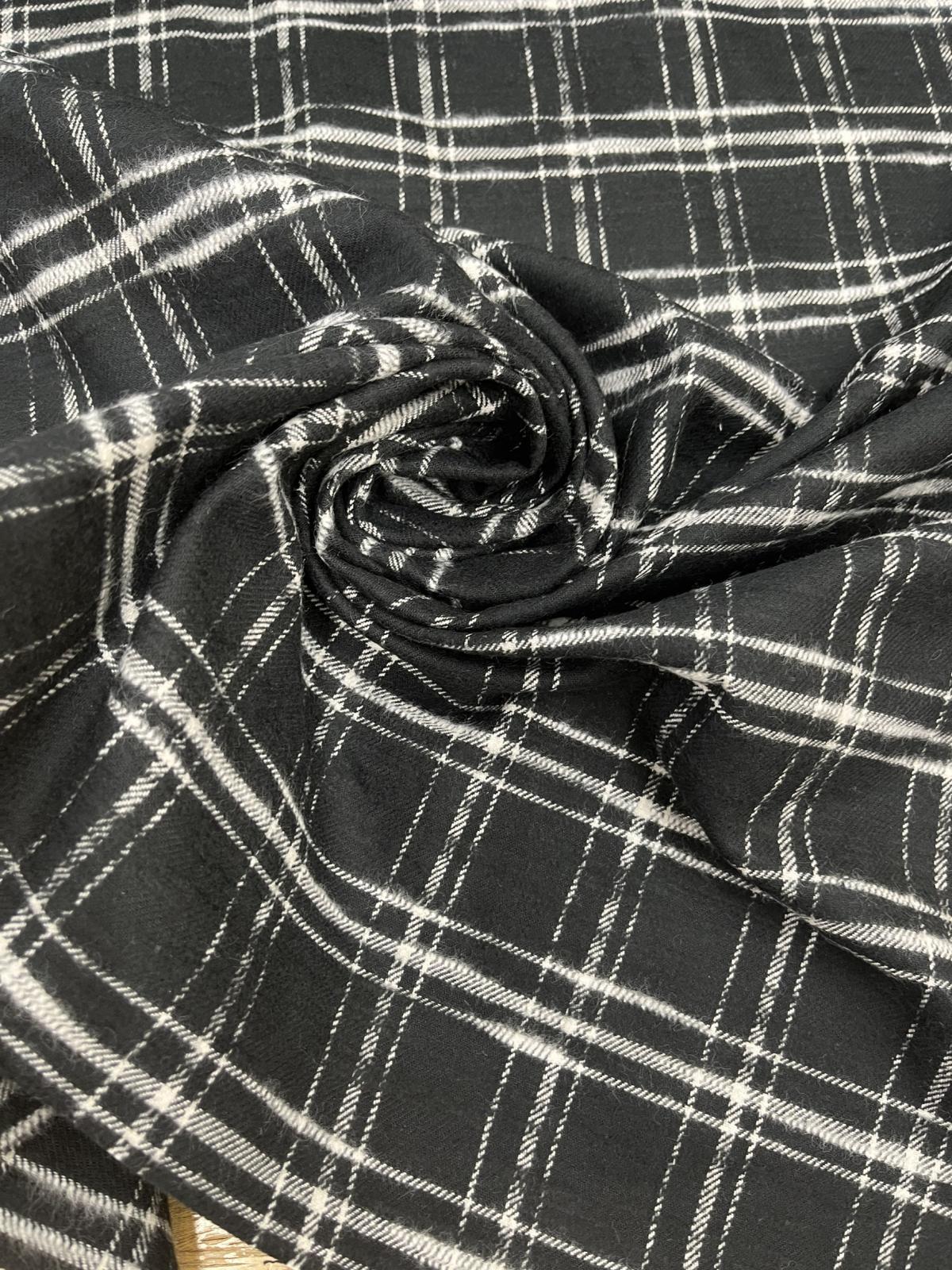黒をベースに白糸で格子を描いた、クラシックで洗練されたチェック織り。