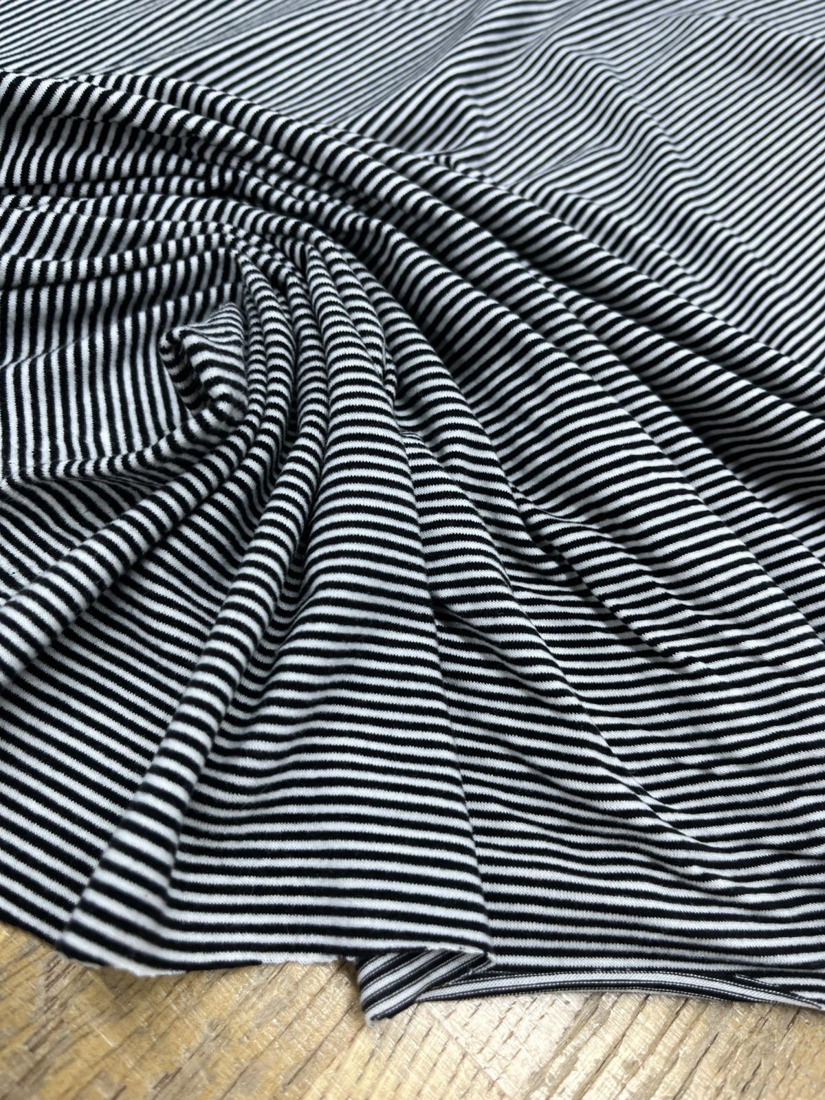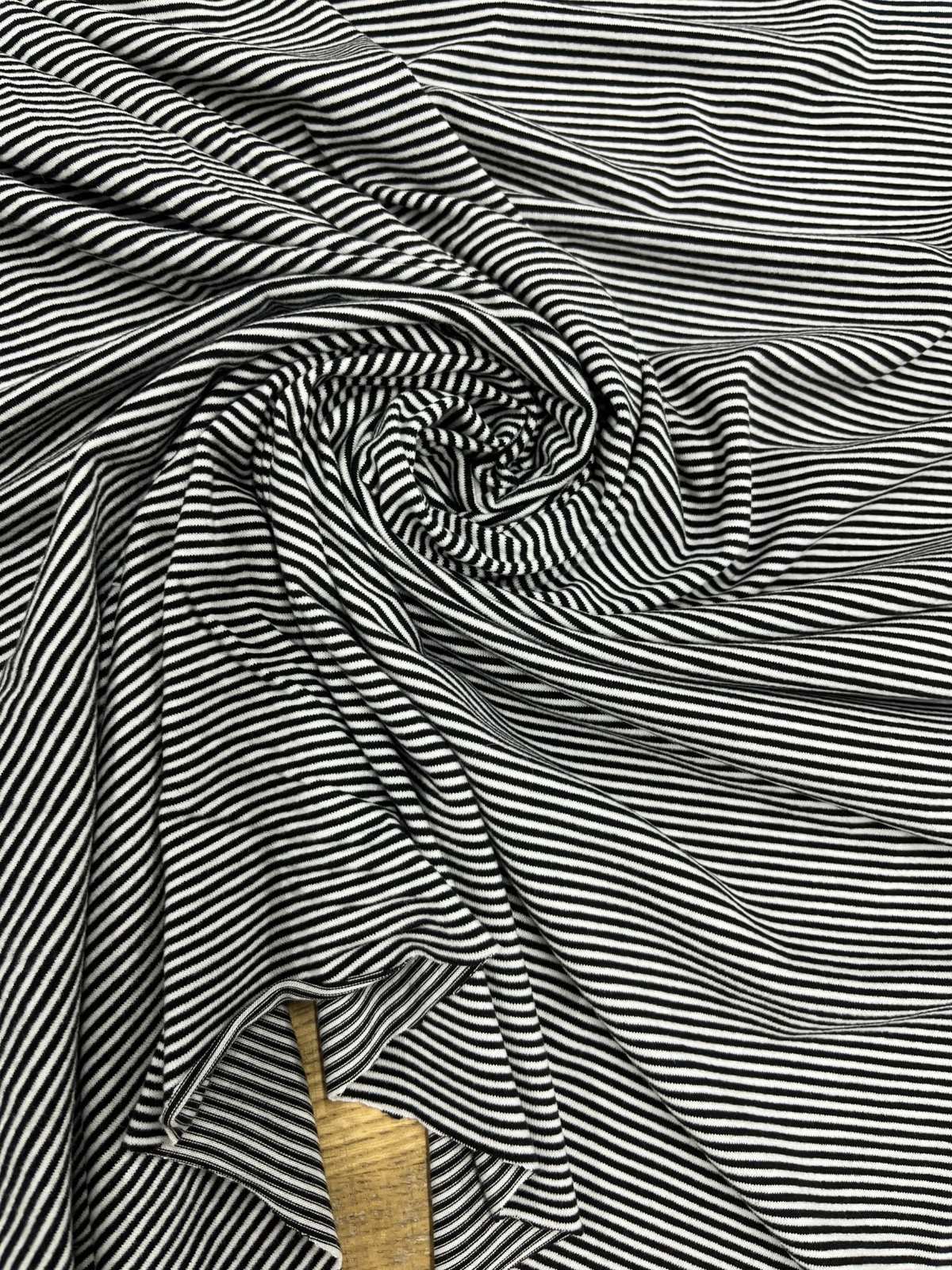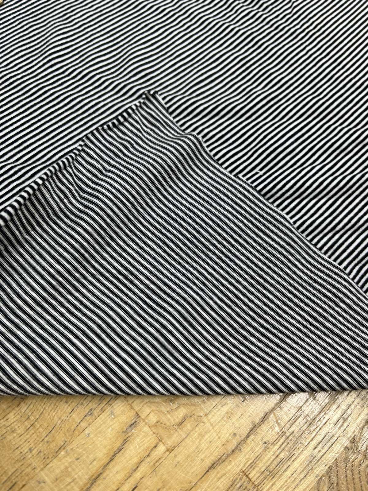 細ピッチのボーダーが均一に入った、すっきりとした印象の素材です。