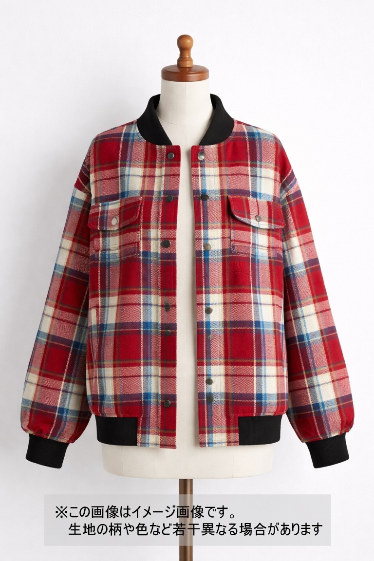 赤をベースに、ブルー・生成り・ブラックを効かせたチェック柄で、クラシックさとカジュアル感を併せ持つ配色。