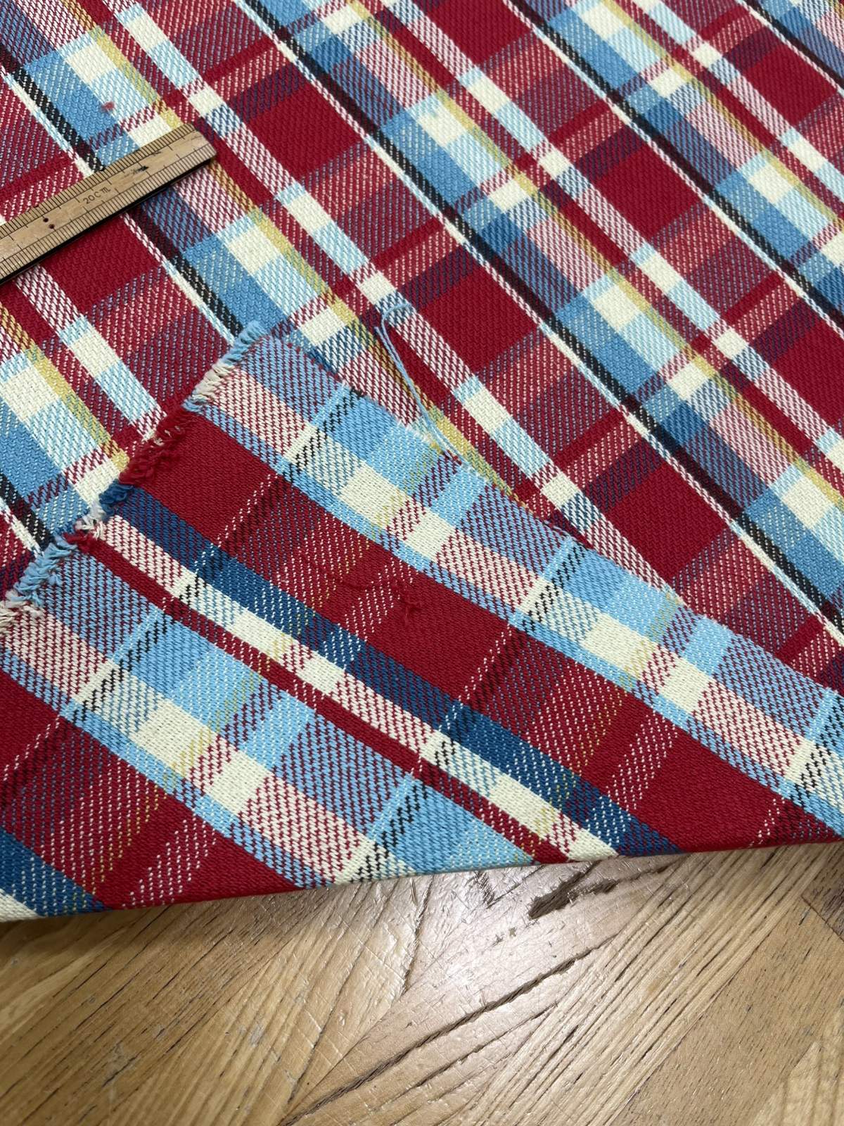 生地:綿100%ヘビーツイルチェック柄(レッド×ブルー) [kiji-3172]