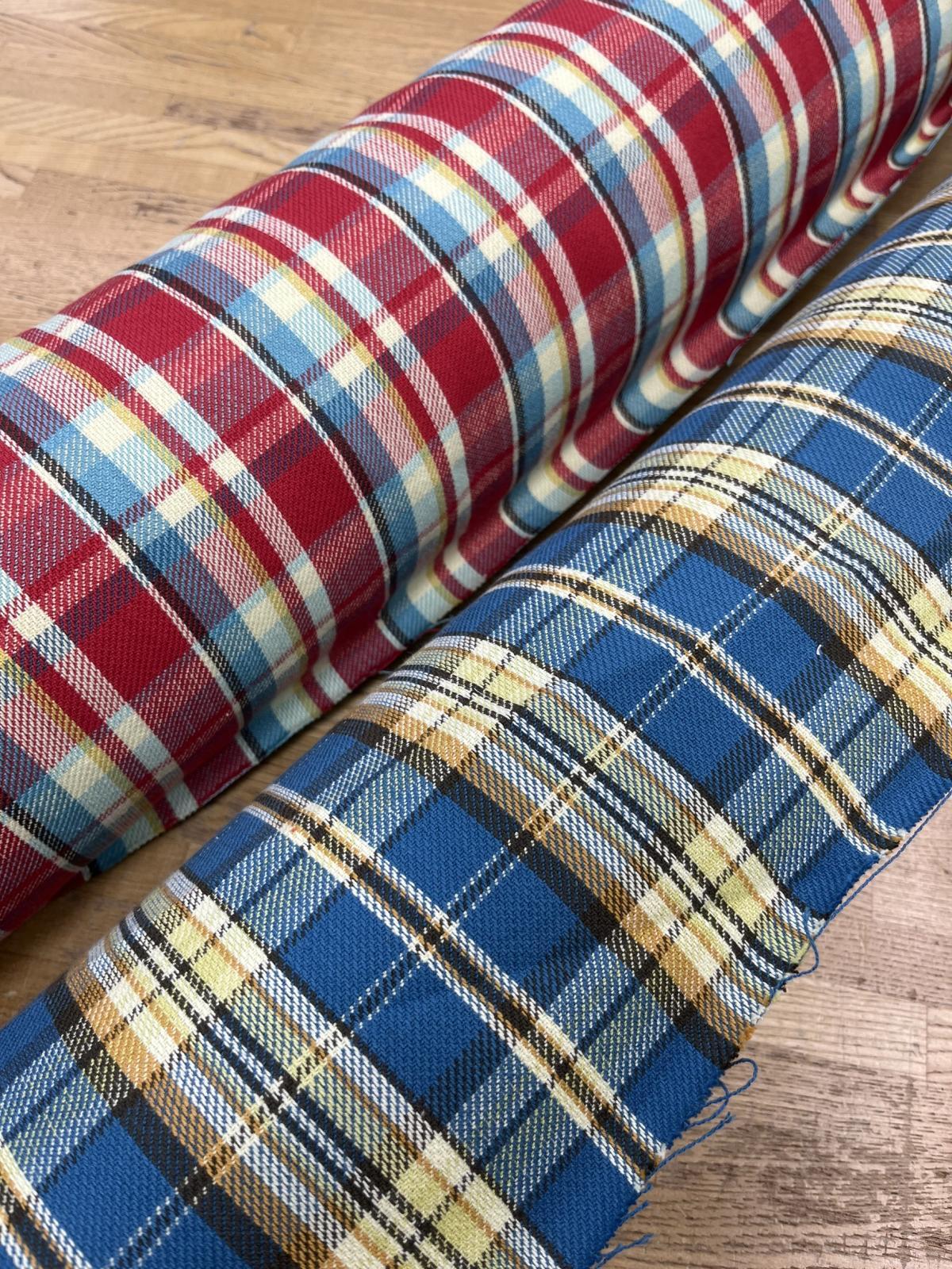 生地:綿100%ヘビーツイルチェック柄(レッド×ブルー)