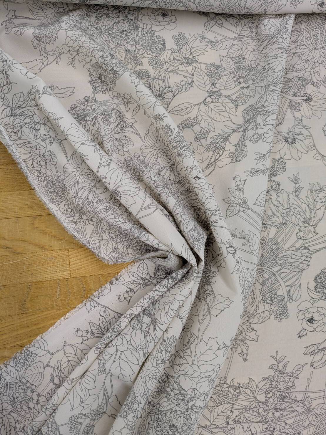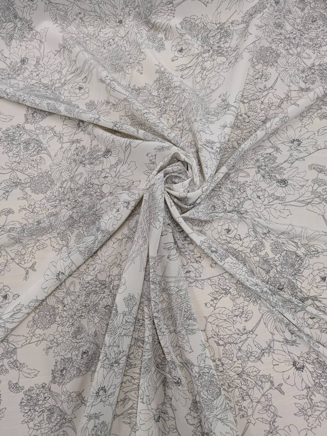 生地:ジーナ糸ポリエステルデシン花柄(白/グレー)