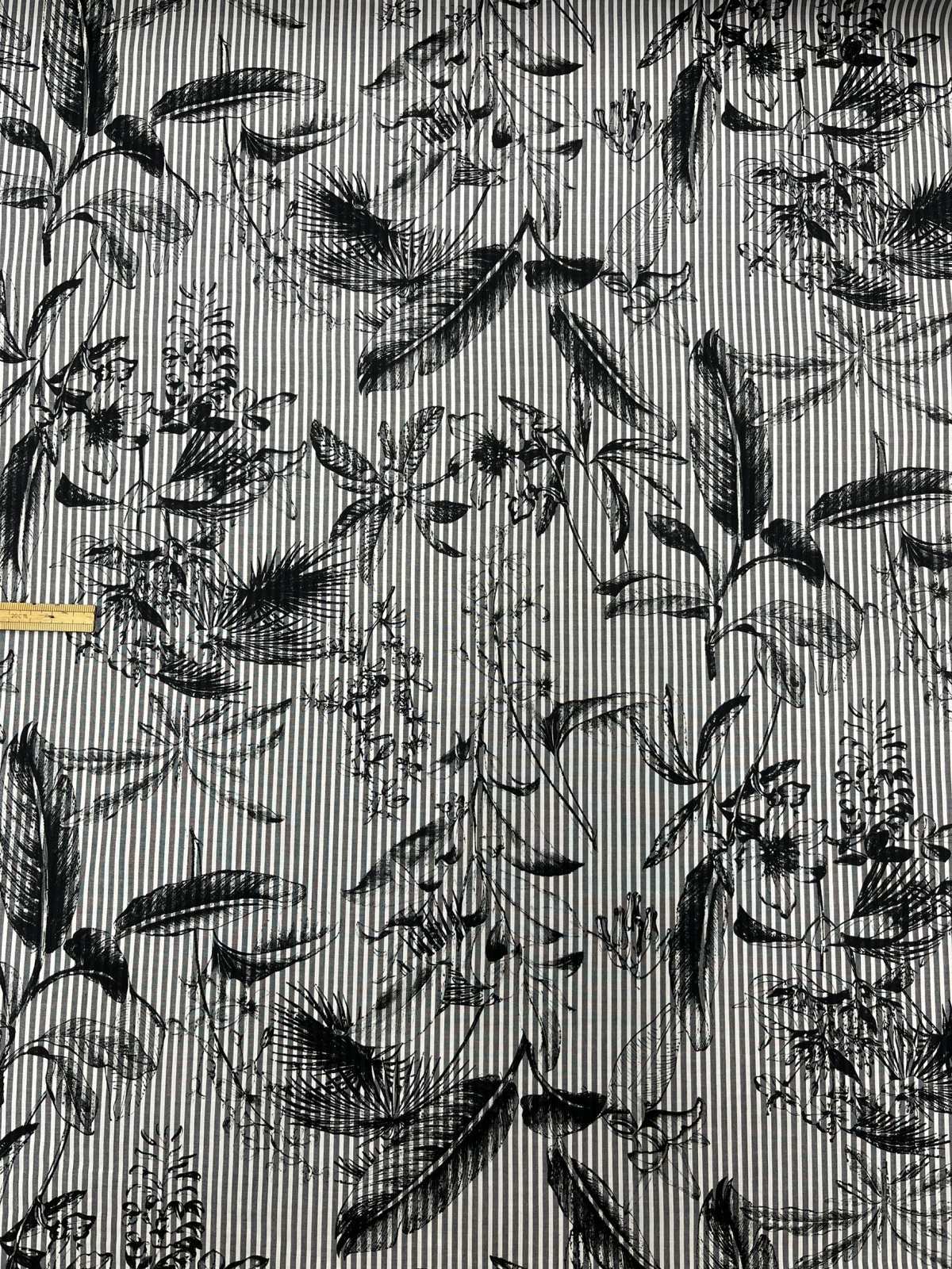 生地:綿100%/70ローン 先染めストライプ 花柄プリント(紺×白) [kiji-3188]
