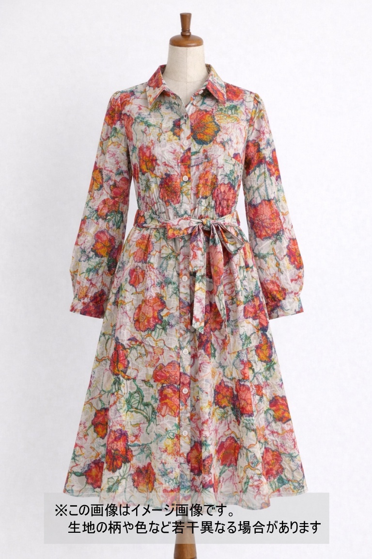 プリントと織り組織が重なり合い、奥行きのある柄行きと上品な雰囲気が楽しめます。