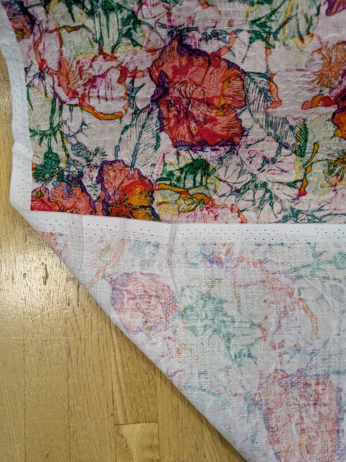 生地:綿100%ジャガード フラワープリント(キナリ×赤×オレンジ×緑)