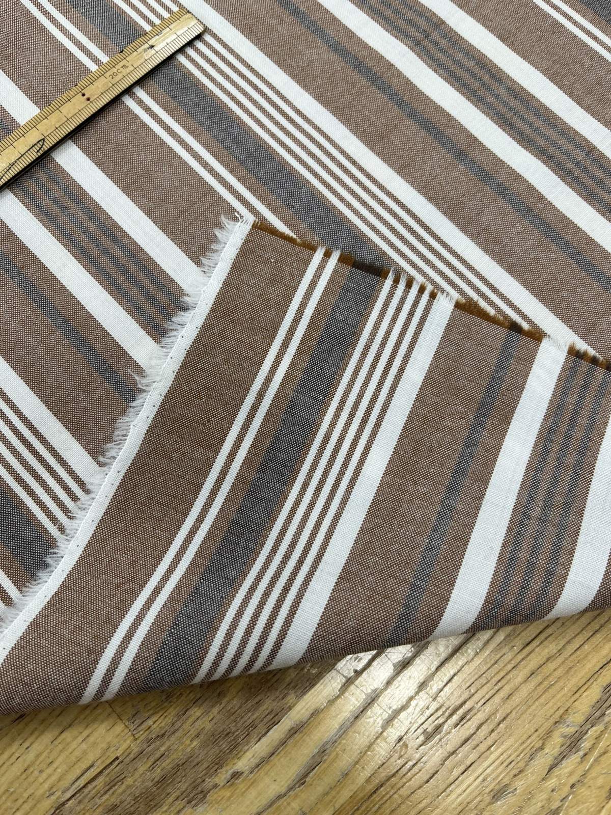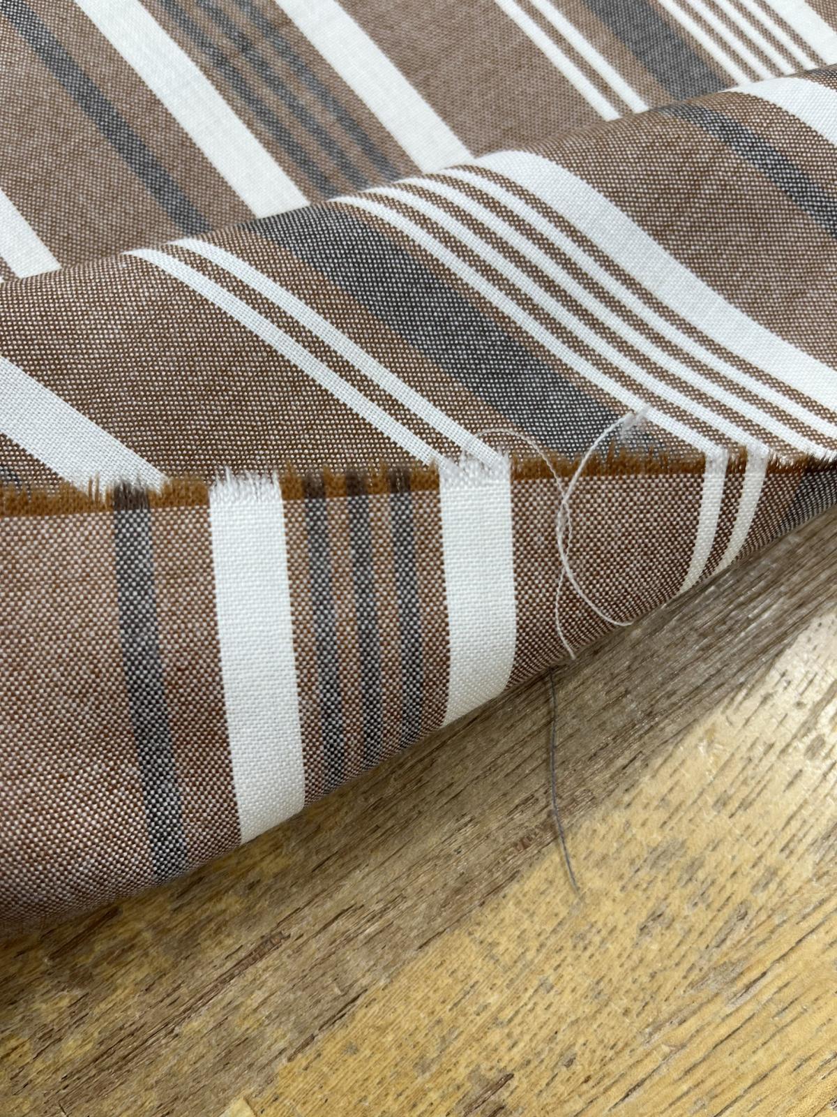 生地:綿風ポリエステル混ストライプ(茶) [kiji-3211]