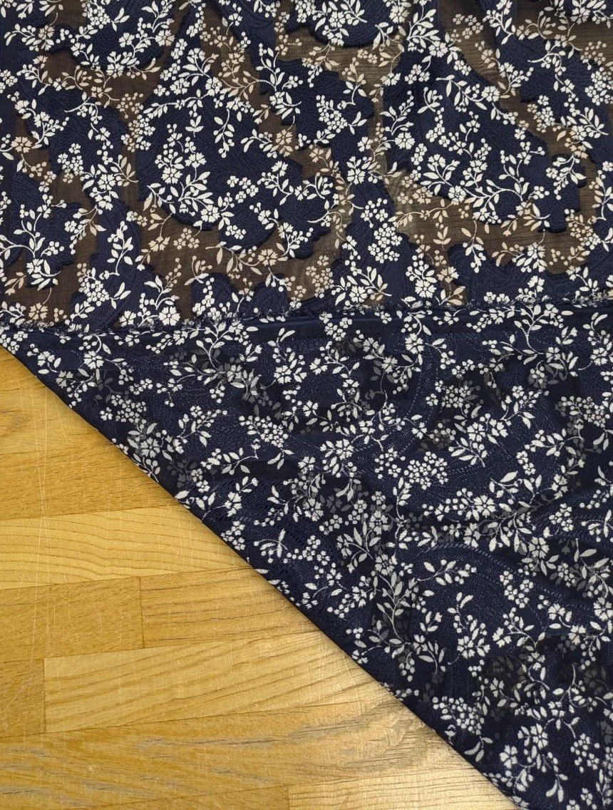 生地:ポリエステル100%シフォンカットジャカード(紺×白)