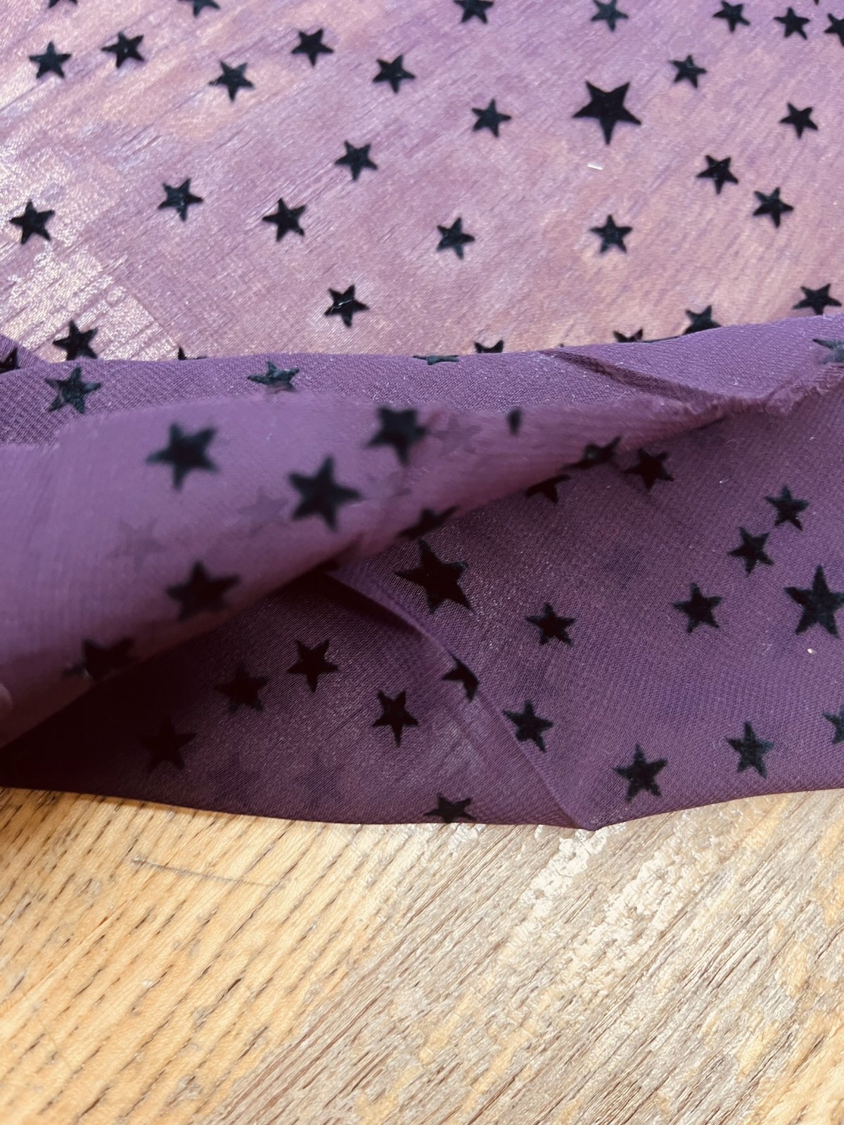 生地:ポリエステル100%星柄フロッキーシフォン(ボルドー)
