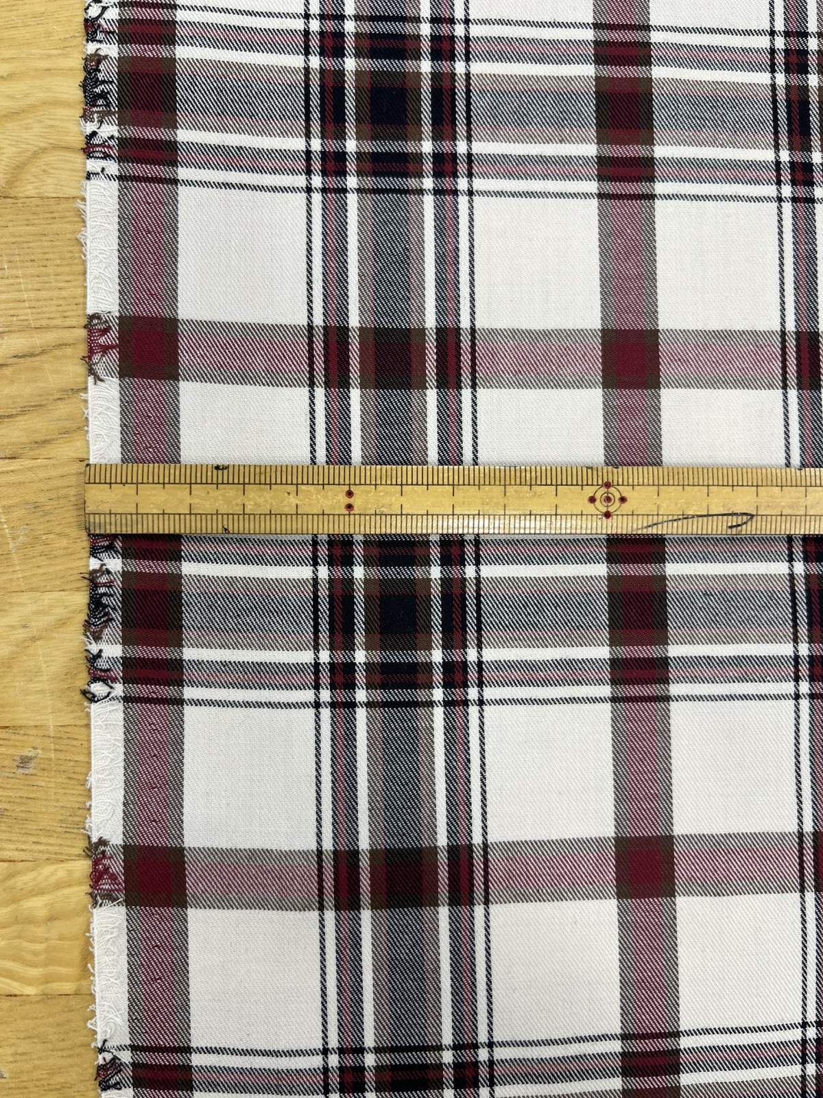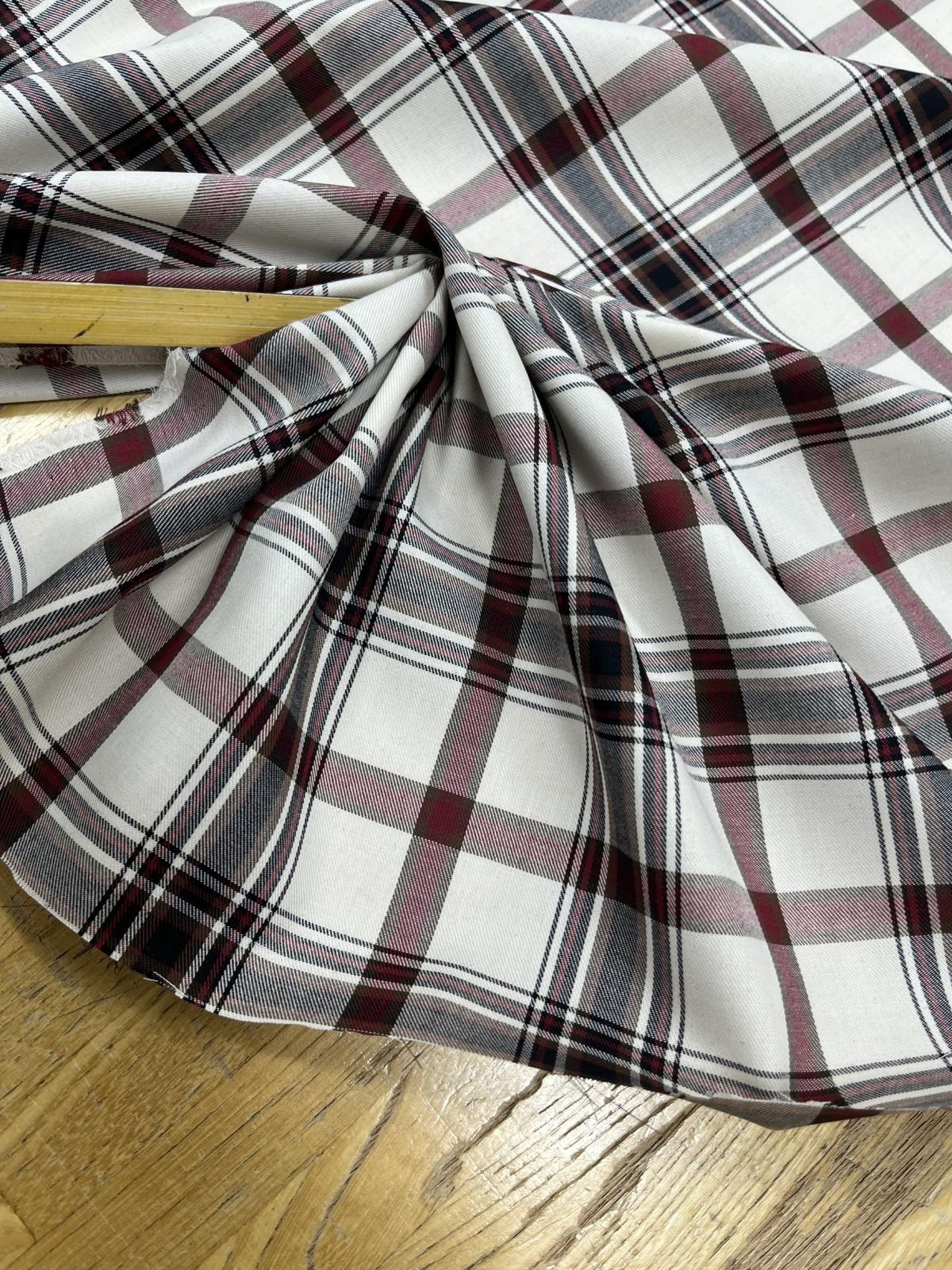 生地:ポリエステルチェック/平織(生成り×エンジ×ブラウン)