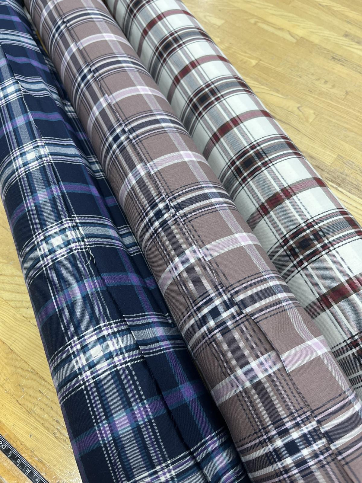 生地:ポリエステルチェック/平織(紺×生成り×パープル)