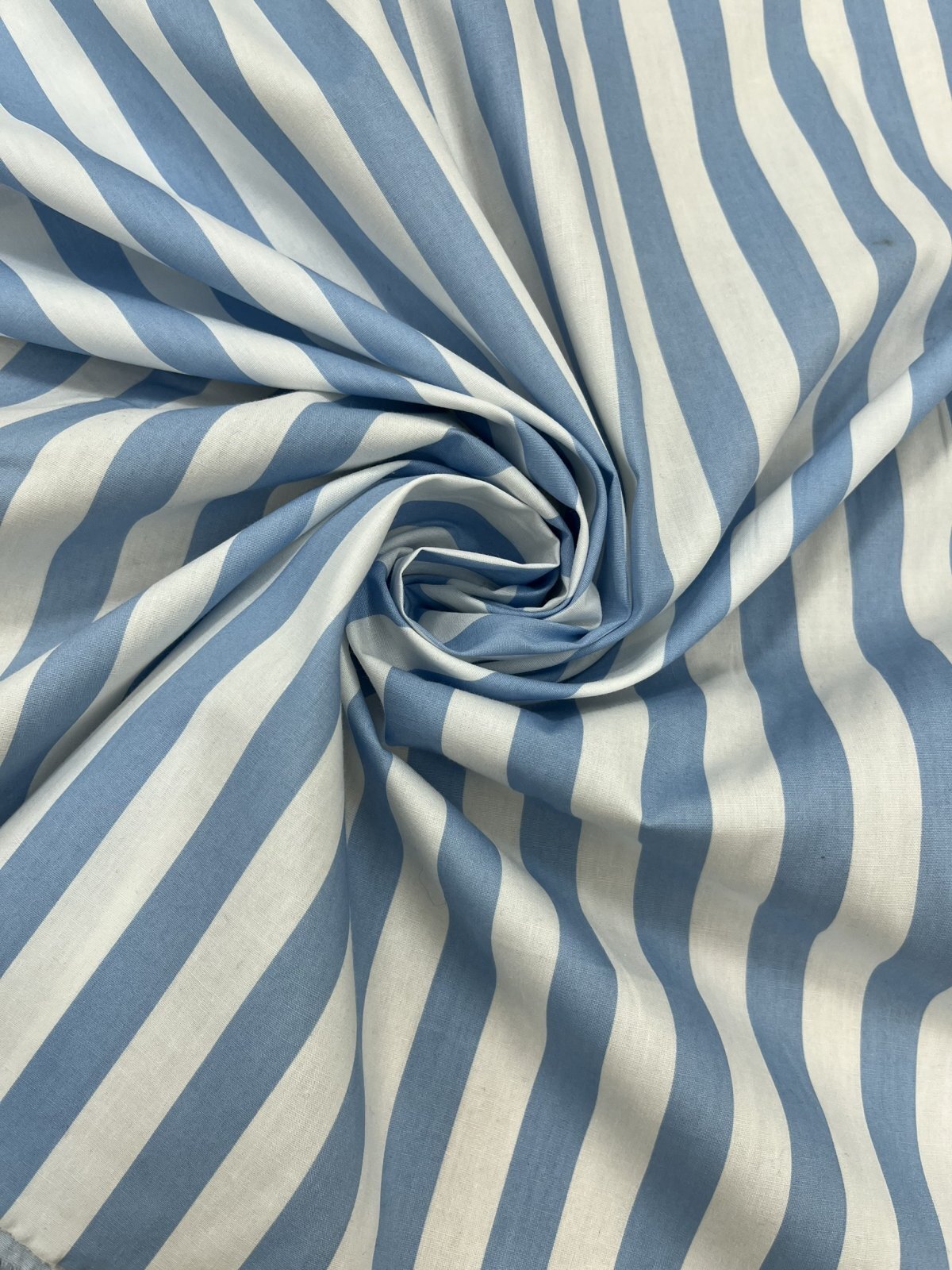 白地にやわらかな水色のストライプが映える、清潔感あふれるコットン素材。