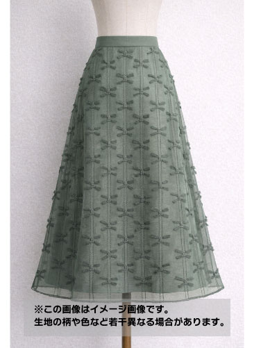 生地:ポリエステル100% シフォンリボン装飾(緑) [kiji-3267]