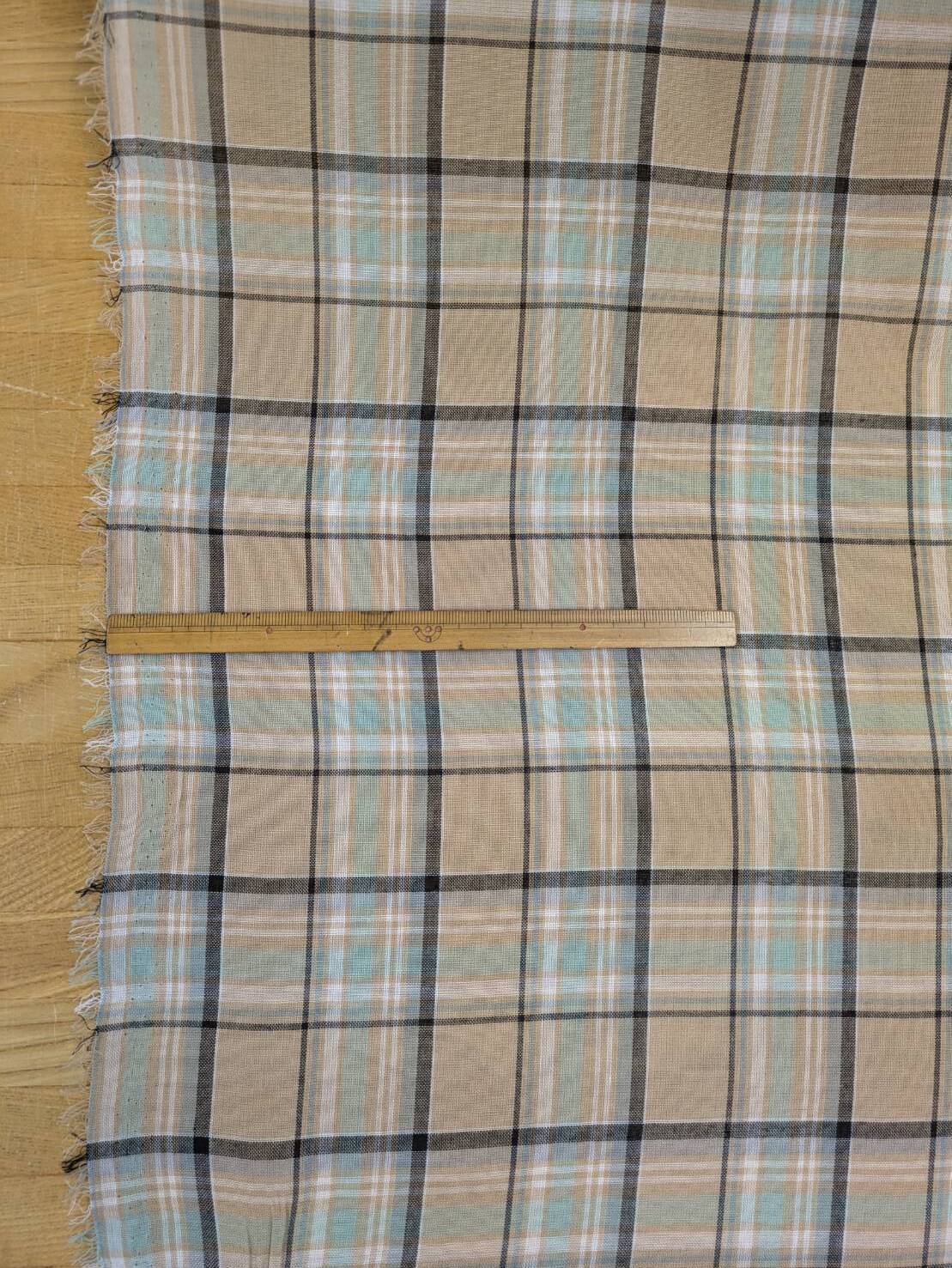 生地:ポリエステルチェックボイル(ベージュ×ブルー)