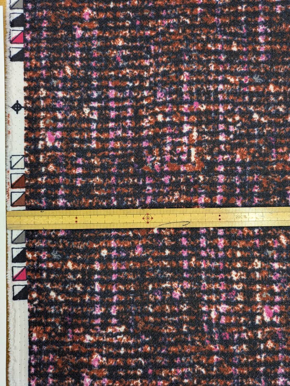 生地:ポリエステル100%ツイード風プリントジョーゼット(レッドブラウン系)