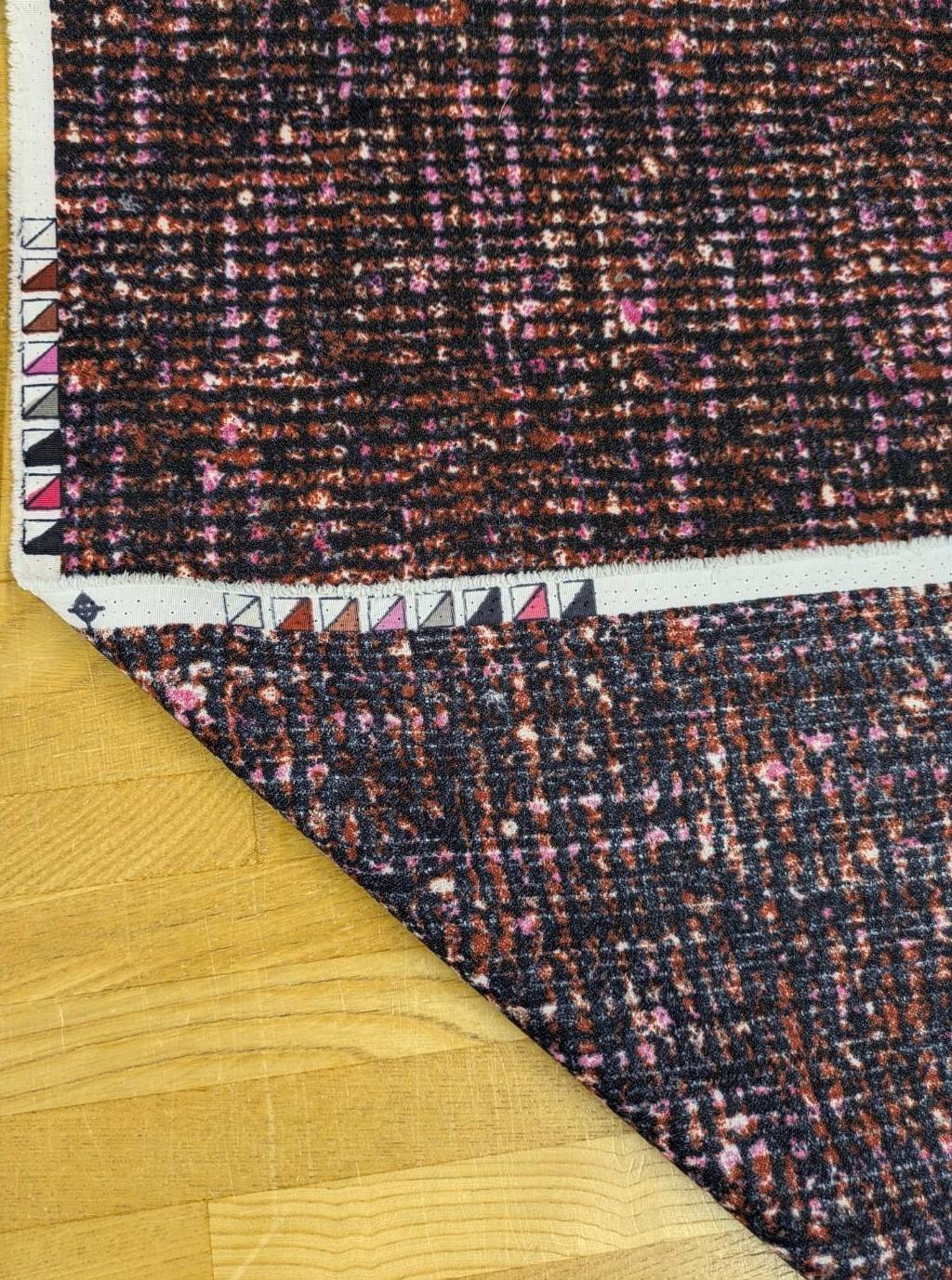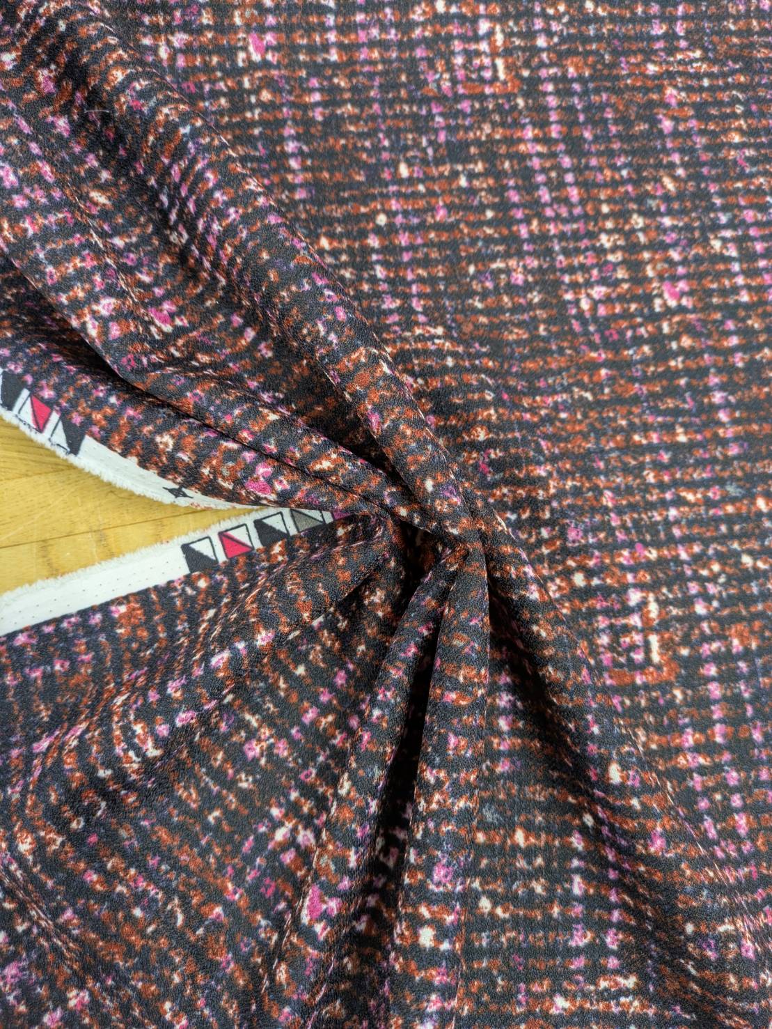 生地:ポリエステル100%ツイード風プリントジョーゼット(レッドブラウン系) [kiji-3285]