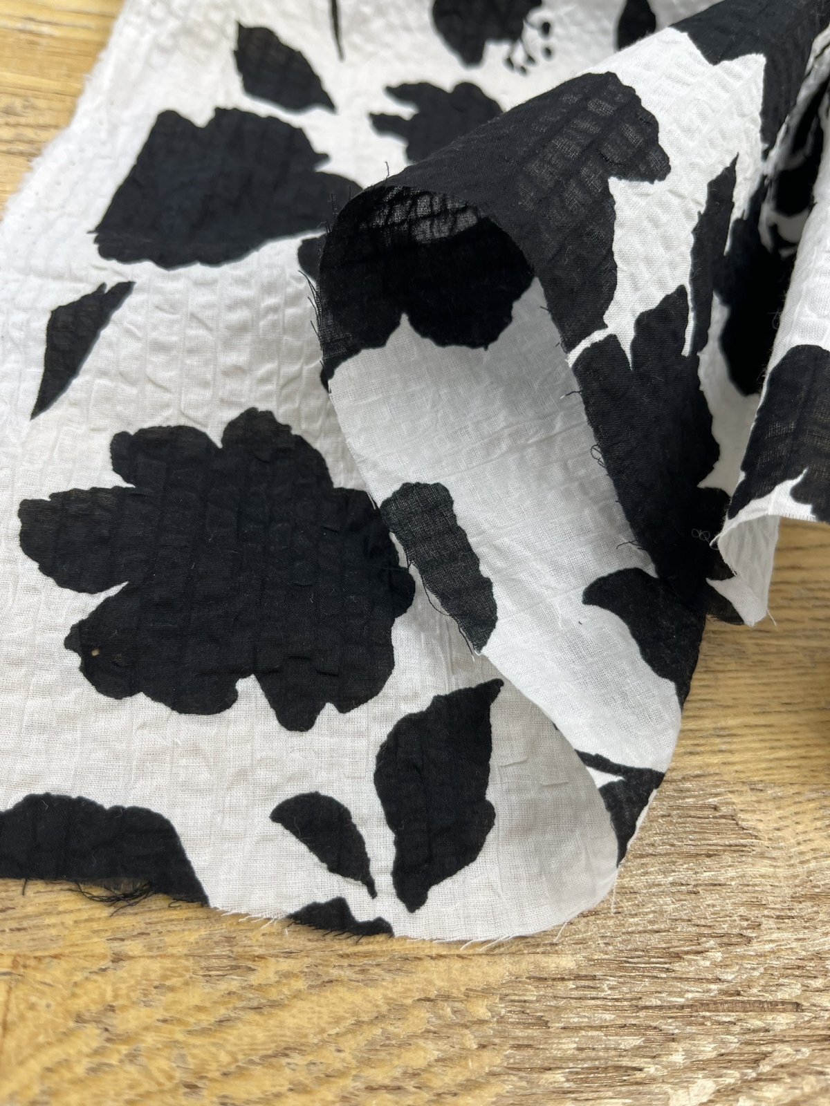生地: 綿100% 綿80ローンミラクルウェーブプリント(オフ白×ブラック)