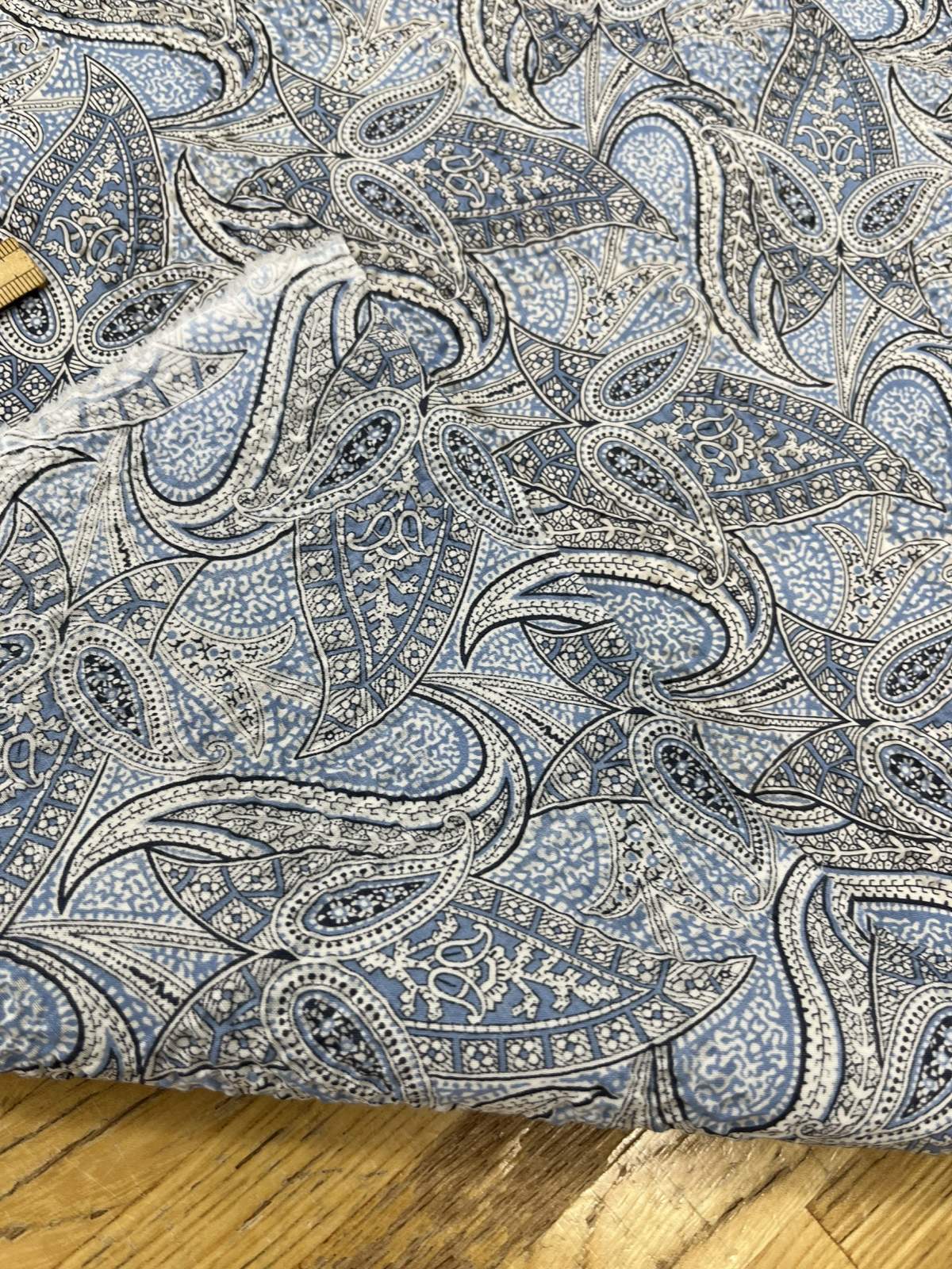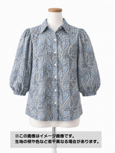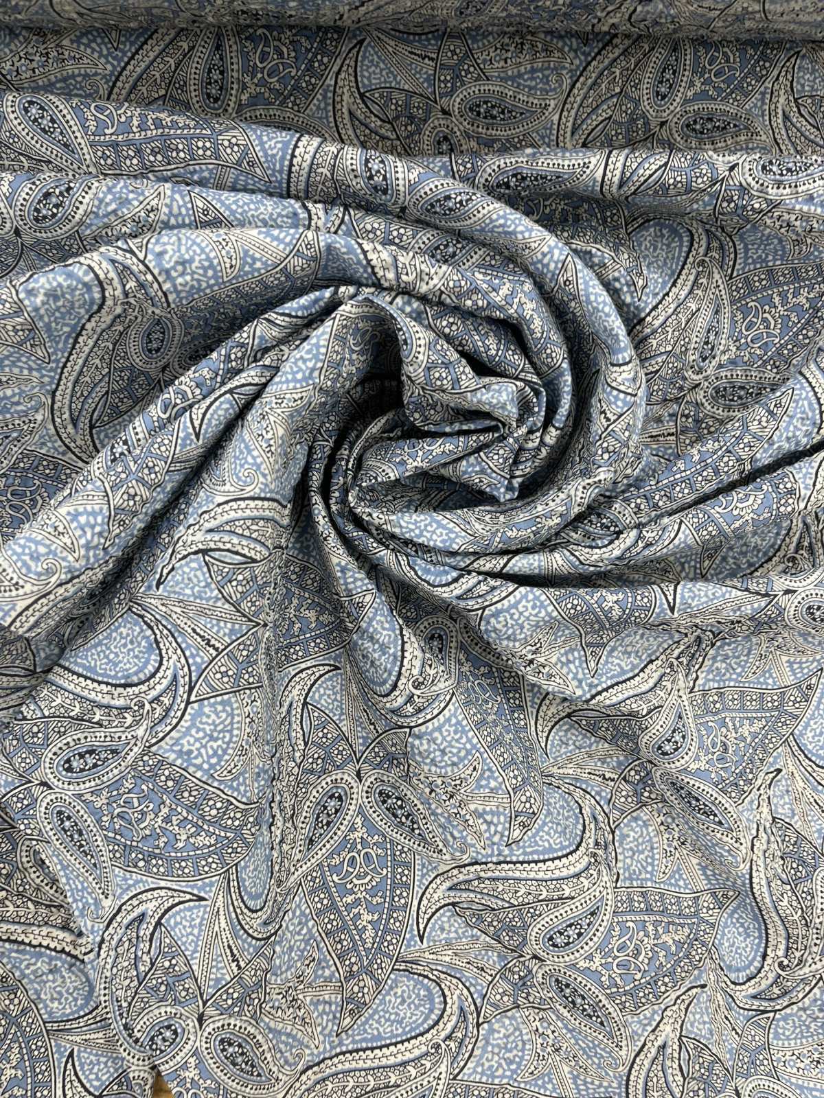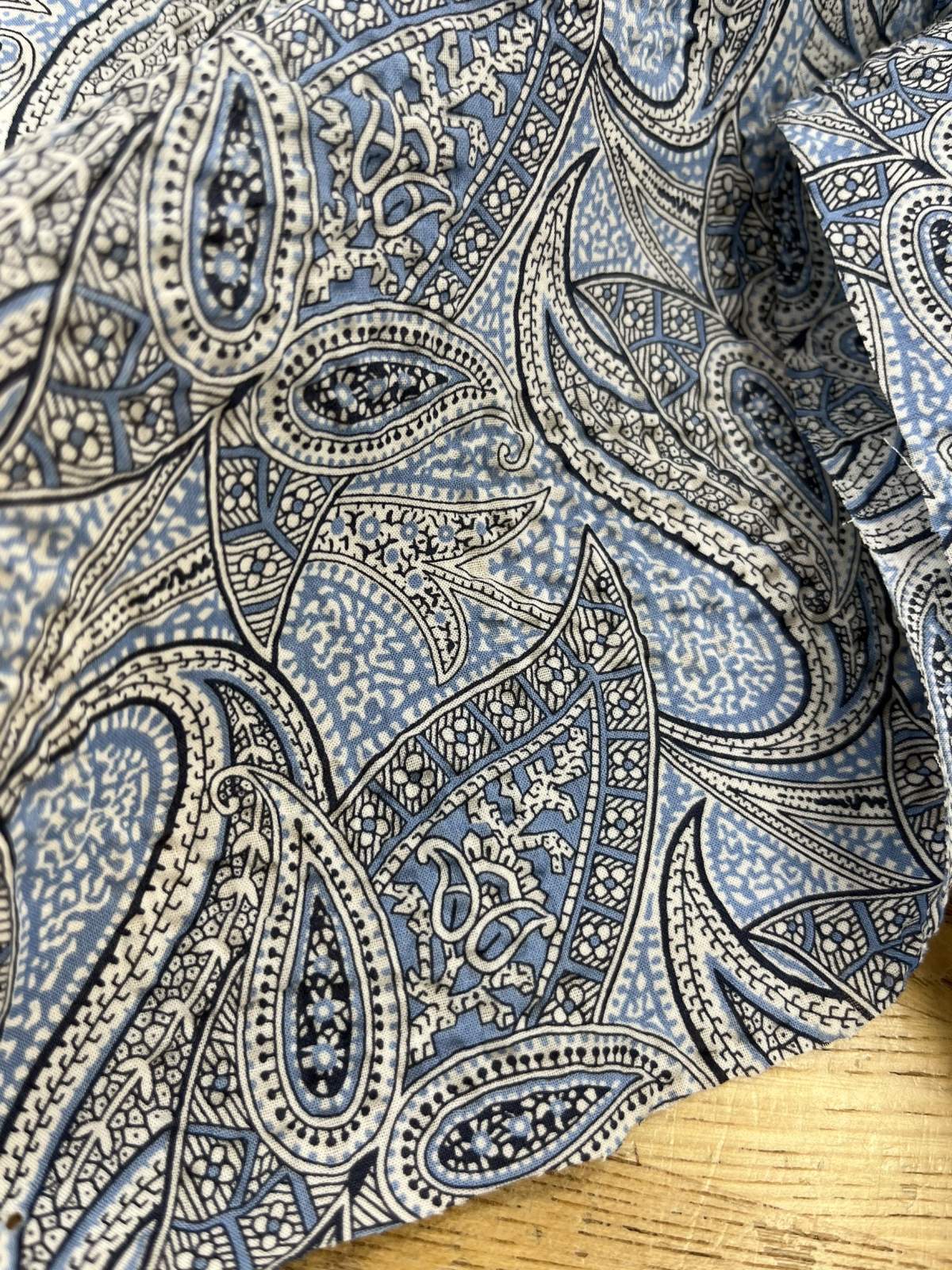 生地:綿100% 塩縮ペイズリープリント(サックス系)