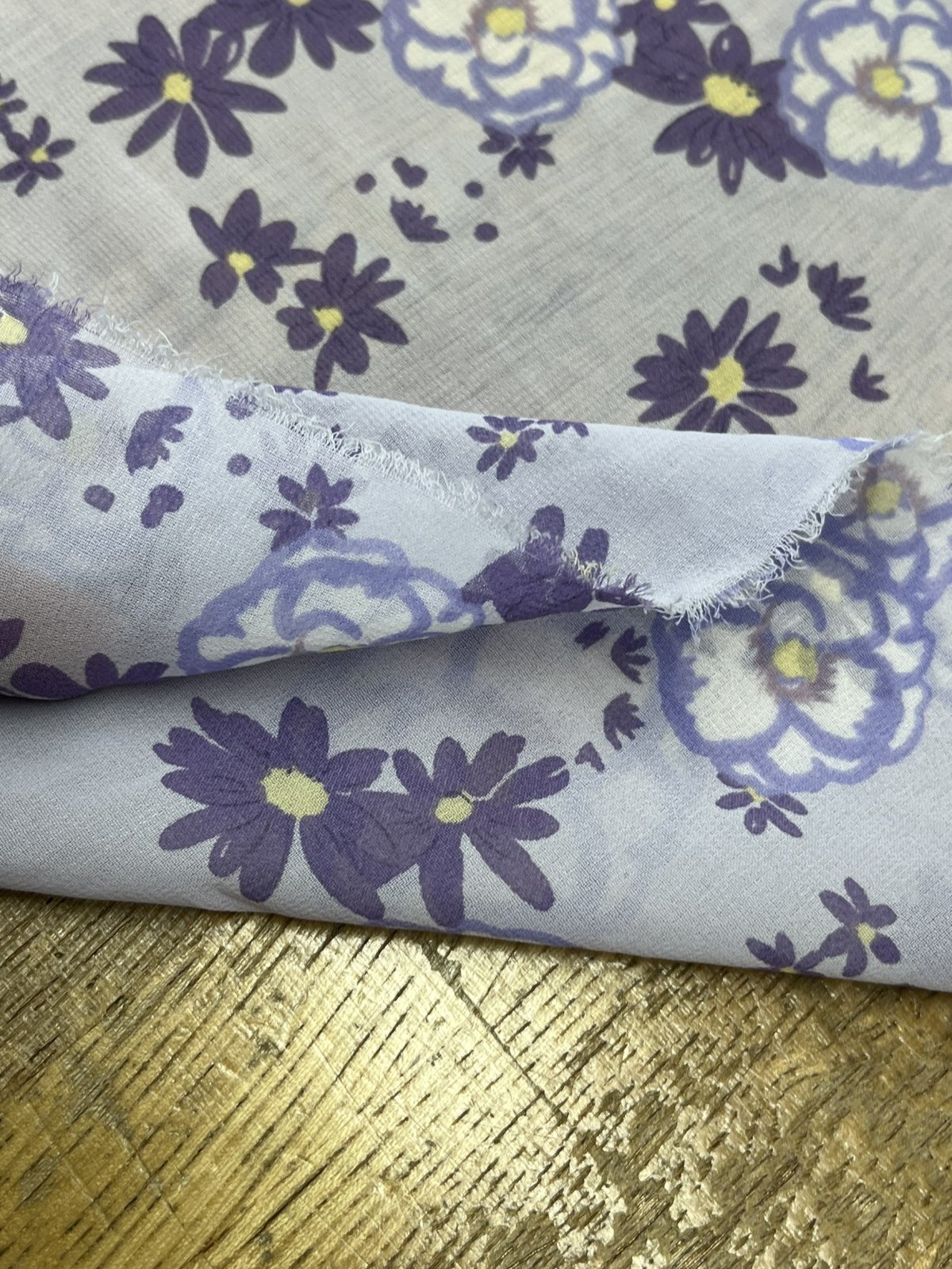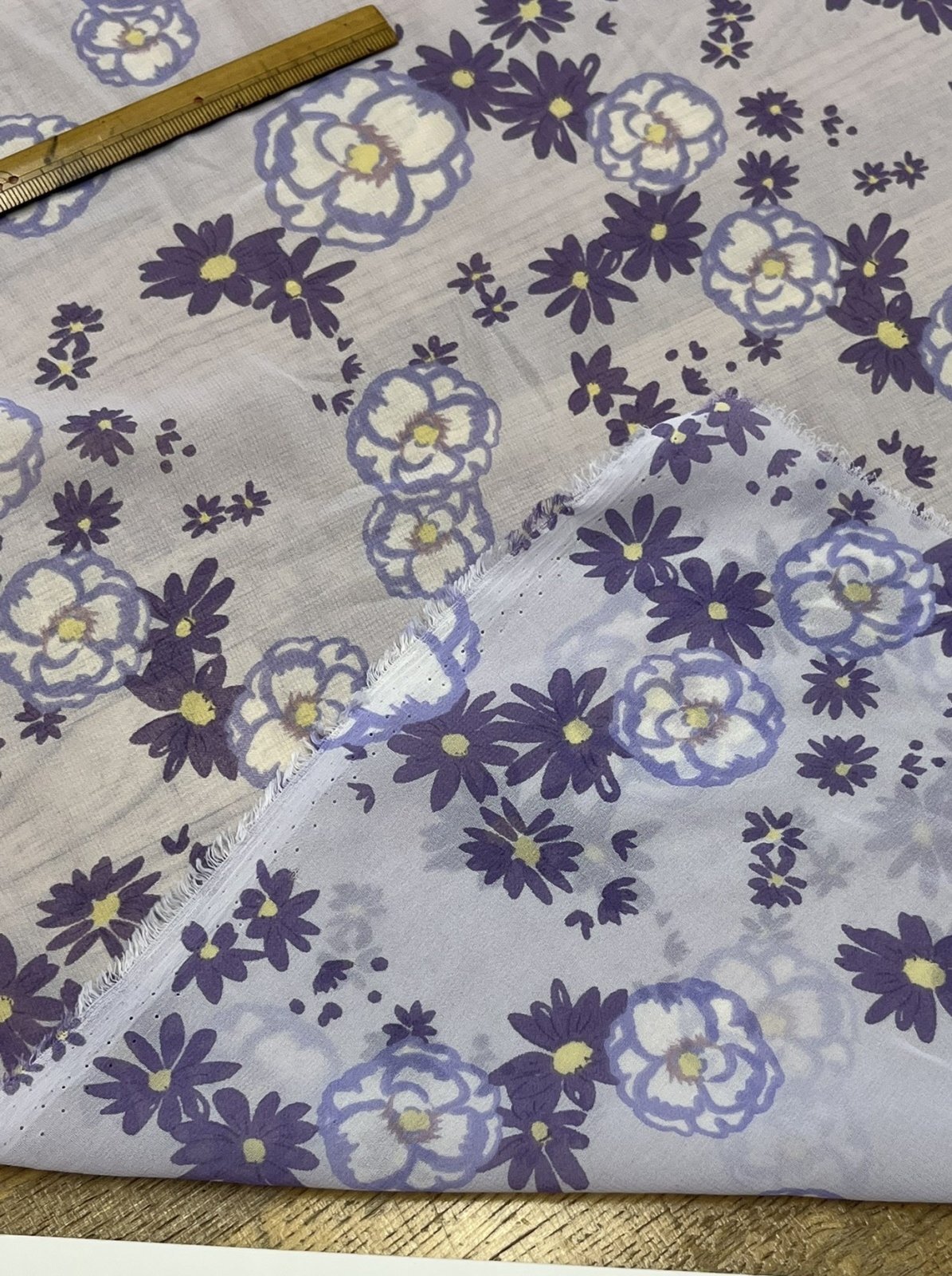 生地:ポリエステル シフォンプリント(ラベンダー系フラワー)