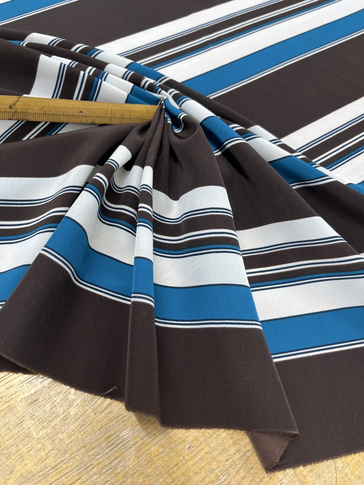 生地:ポリエステル100%デシンボーダープリント(ブルー)