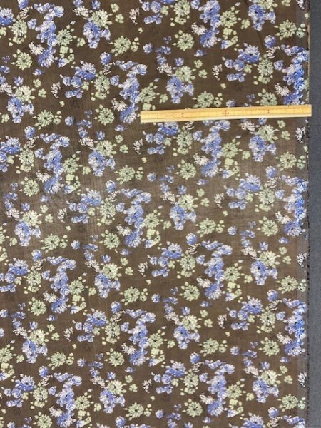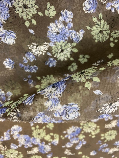 生地:ポリエステル花柄(茶/ブルー) [kiji-0455]