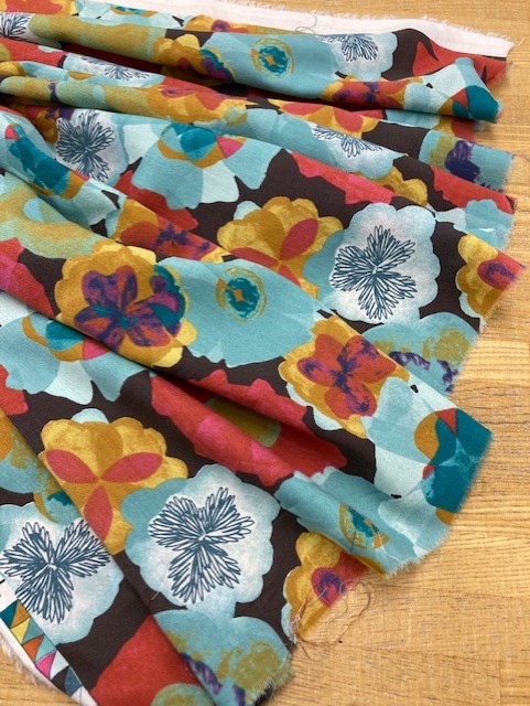 生地:フラワー柄綿レーヨン(茶/赤)