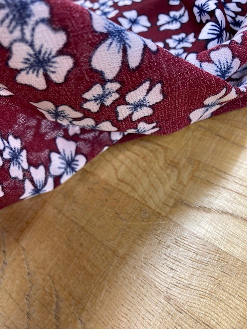 生地:レトロ花柄ポリエステルニット(エンジ)