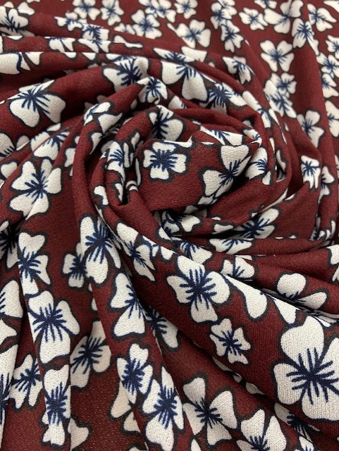 生地:レトロ花柄ポリエステルニット(エンジ) [kiji-0650]