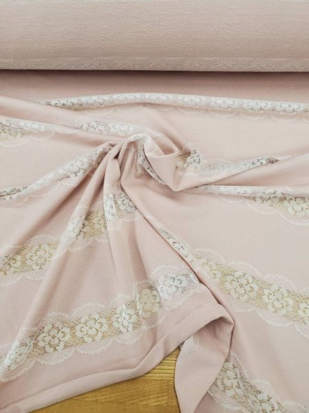 生地:太ボーダーレースニット(ピンク) [kiji-0086]