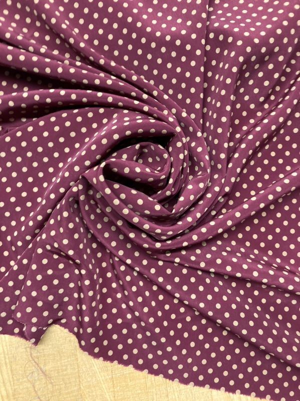 生地:水玉柄ポリエステル100%(エンジ/ベージュ) [kiji-1964]