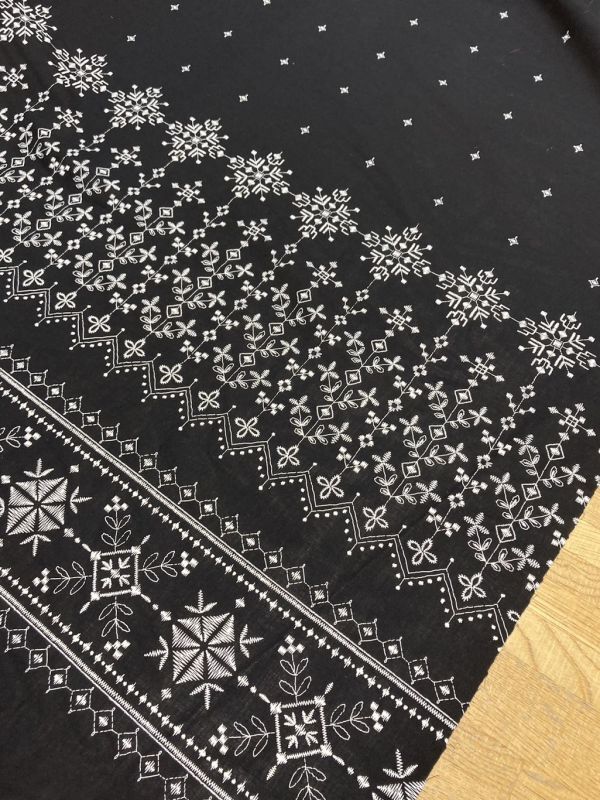 生地:クロスステッチ刺しゅう風プリント綿(黒/白)