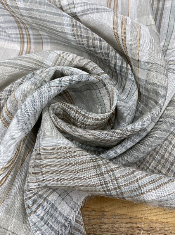 生地:イタリー製チェック柄ポリエステル麻(薄グレー/オレンジ/緑)