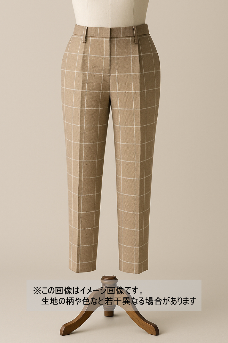 生地:ウールナイロンポリウレタン 格子柄(ベージュ/白)