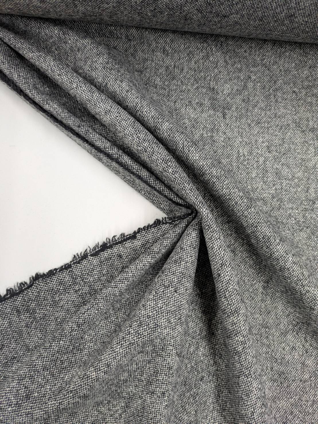 黒とグレーの霜降り糸を織り交ぜた、奥行きのある表情が魅力のネップツイード生地です。