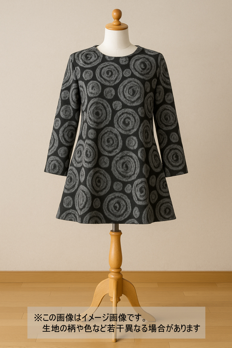 生地:ウールポリエステル混 サークル柄ニット(ブラック×グレー)