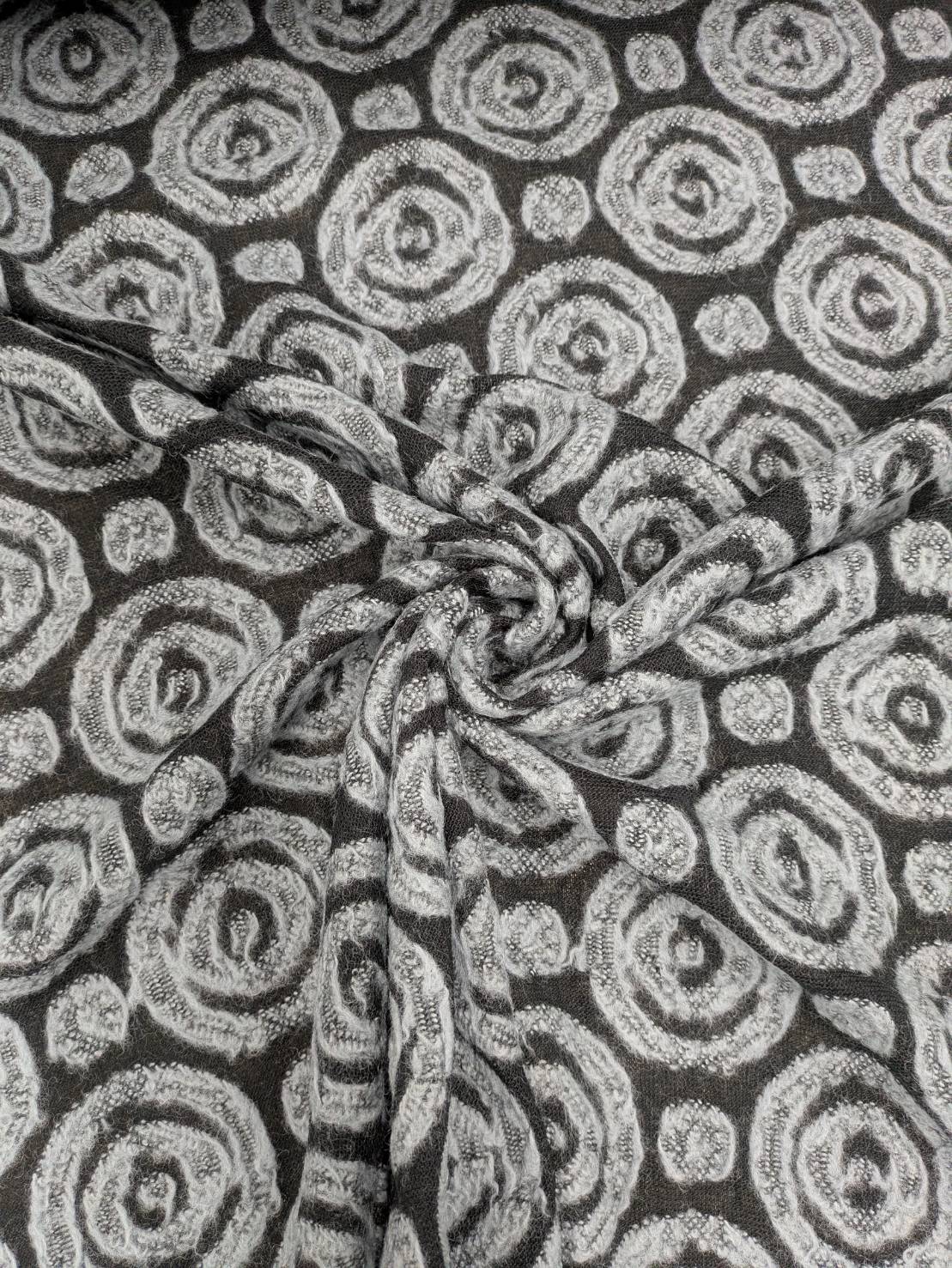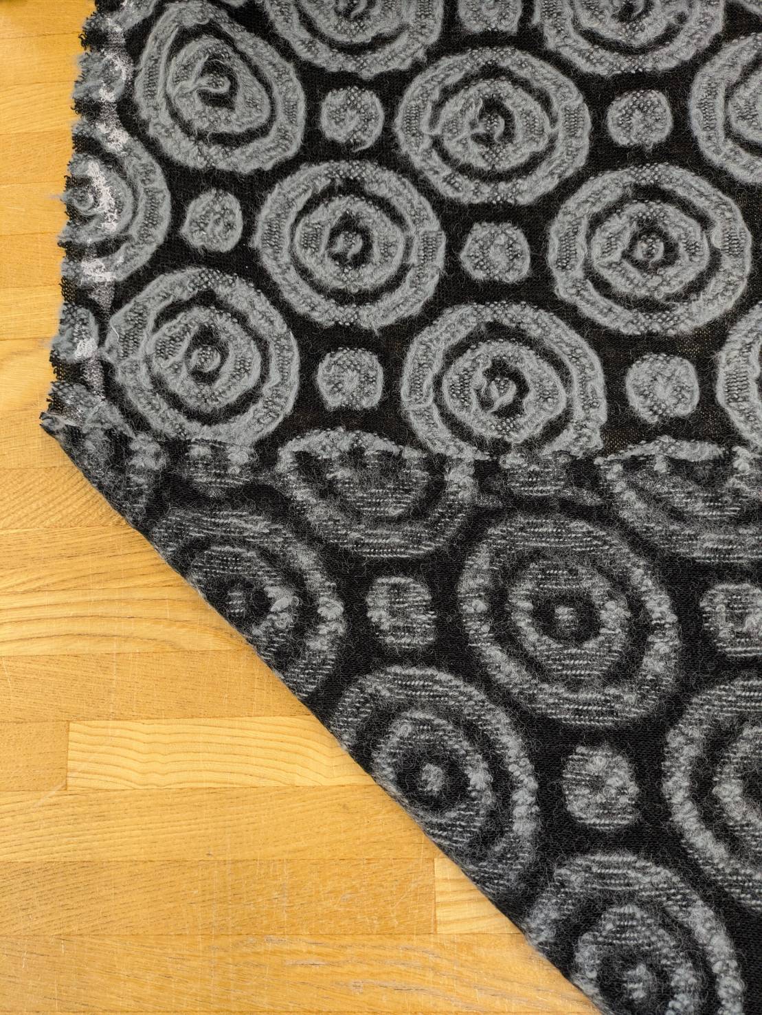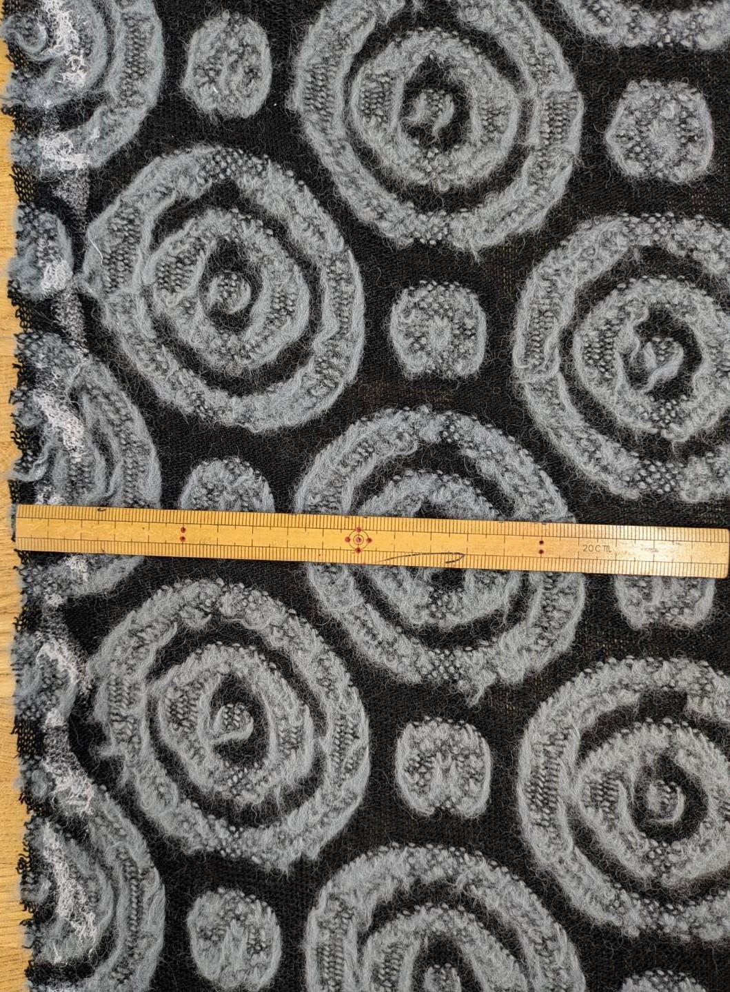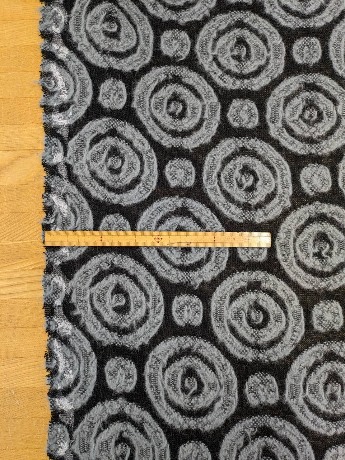 生地:ウールポリエステル混 サークル柄ニット(ブラック×グレー) [kiji-3075]