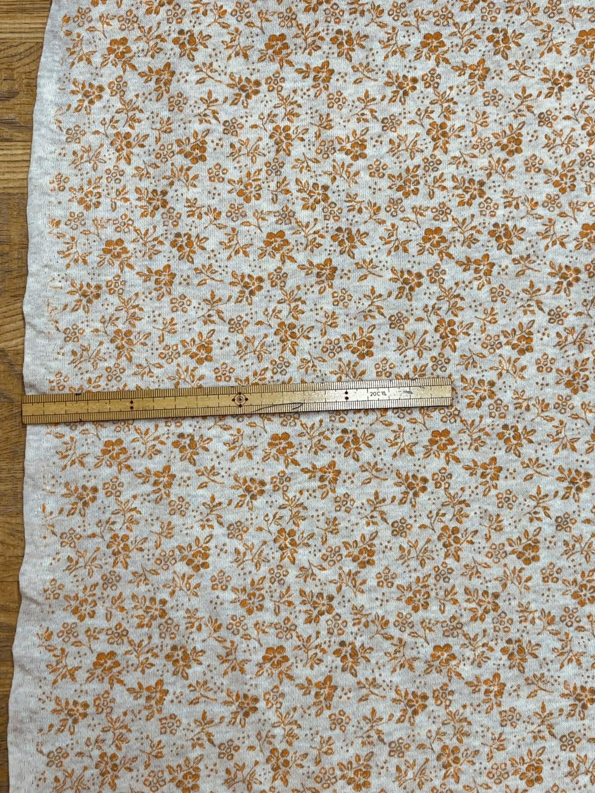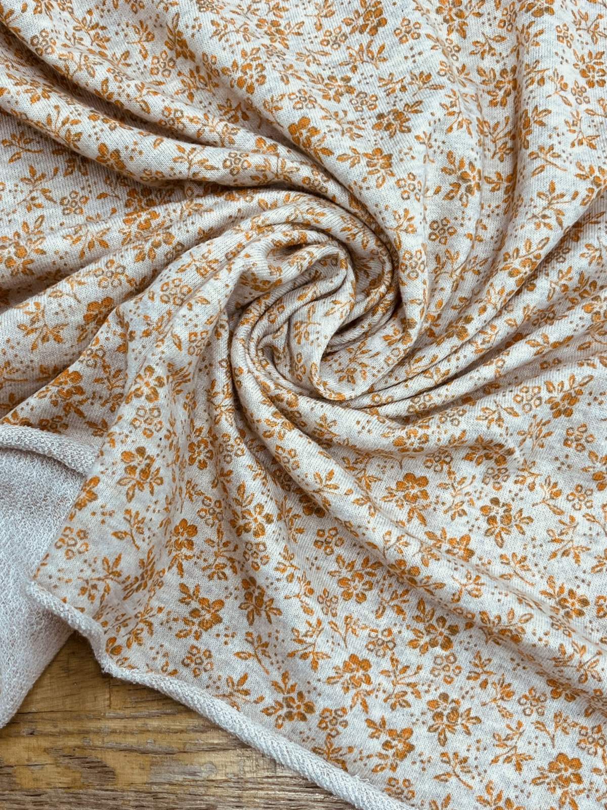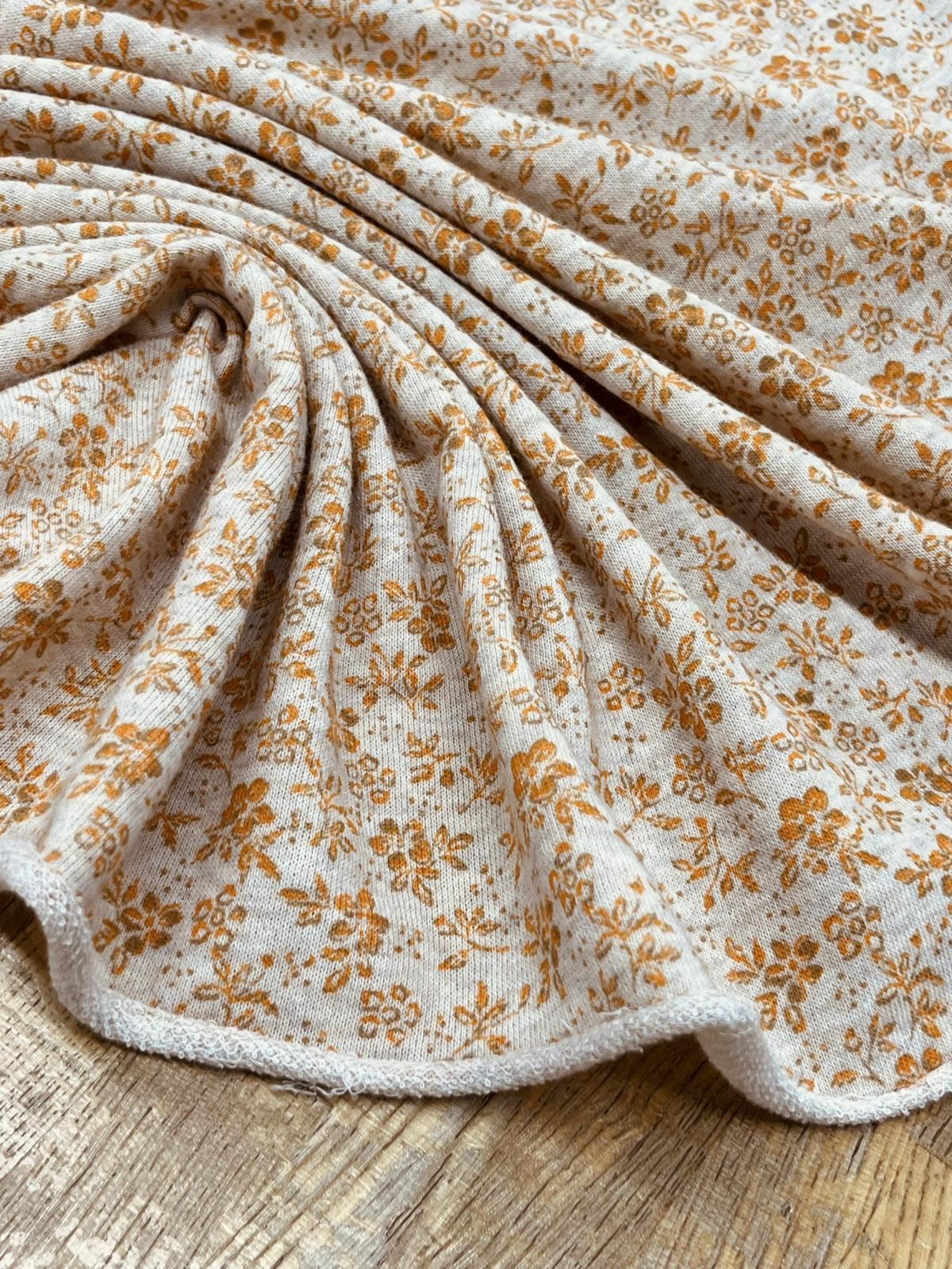 生地:花柄プリントミニ裏毛ニット(ベージュ×オレンジ) [kiji-3092]